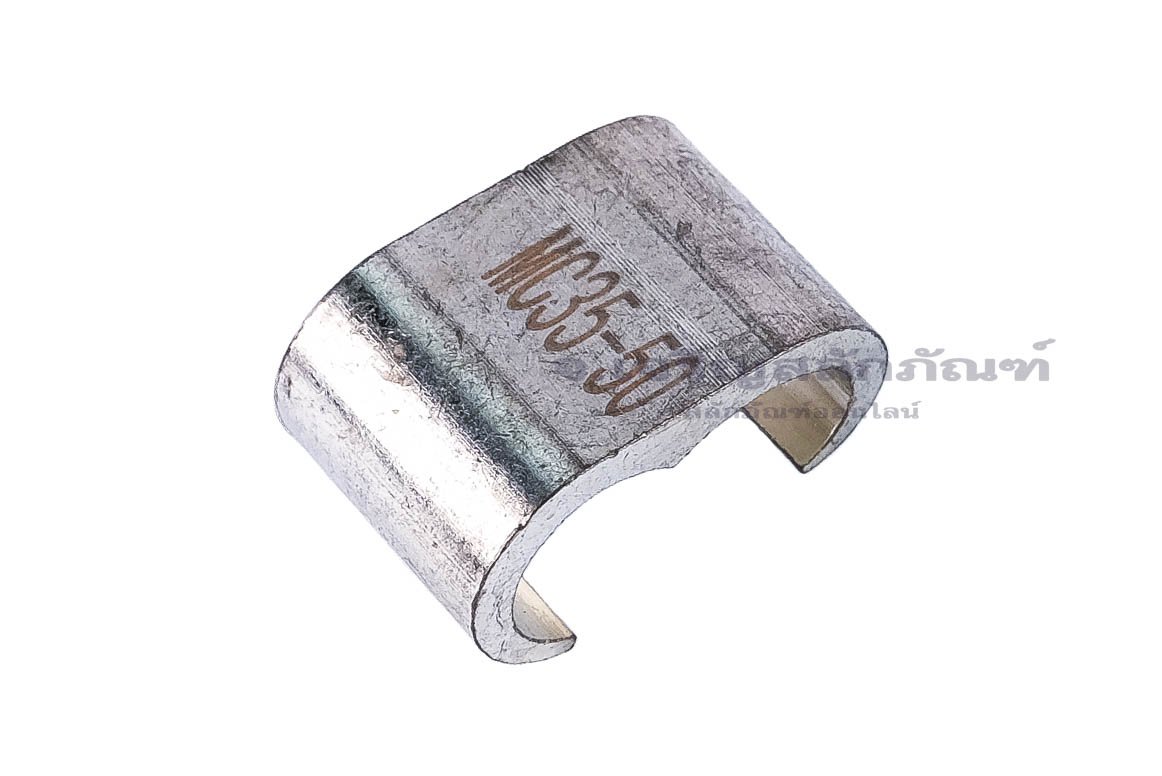 แคลมป์เชื่อมต่อสายไฟ รูปตัว M ทองแดงเคลือบดีบุก MC 35-50 ความกว้างในแคลมป์สำหรับใส่สายไฟวงใหญ่ 13 mm วงเล็ก 10 mm ความยาว 20 mm