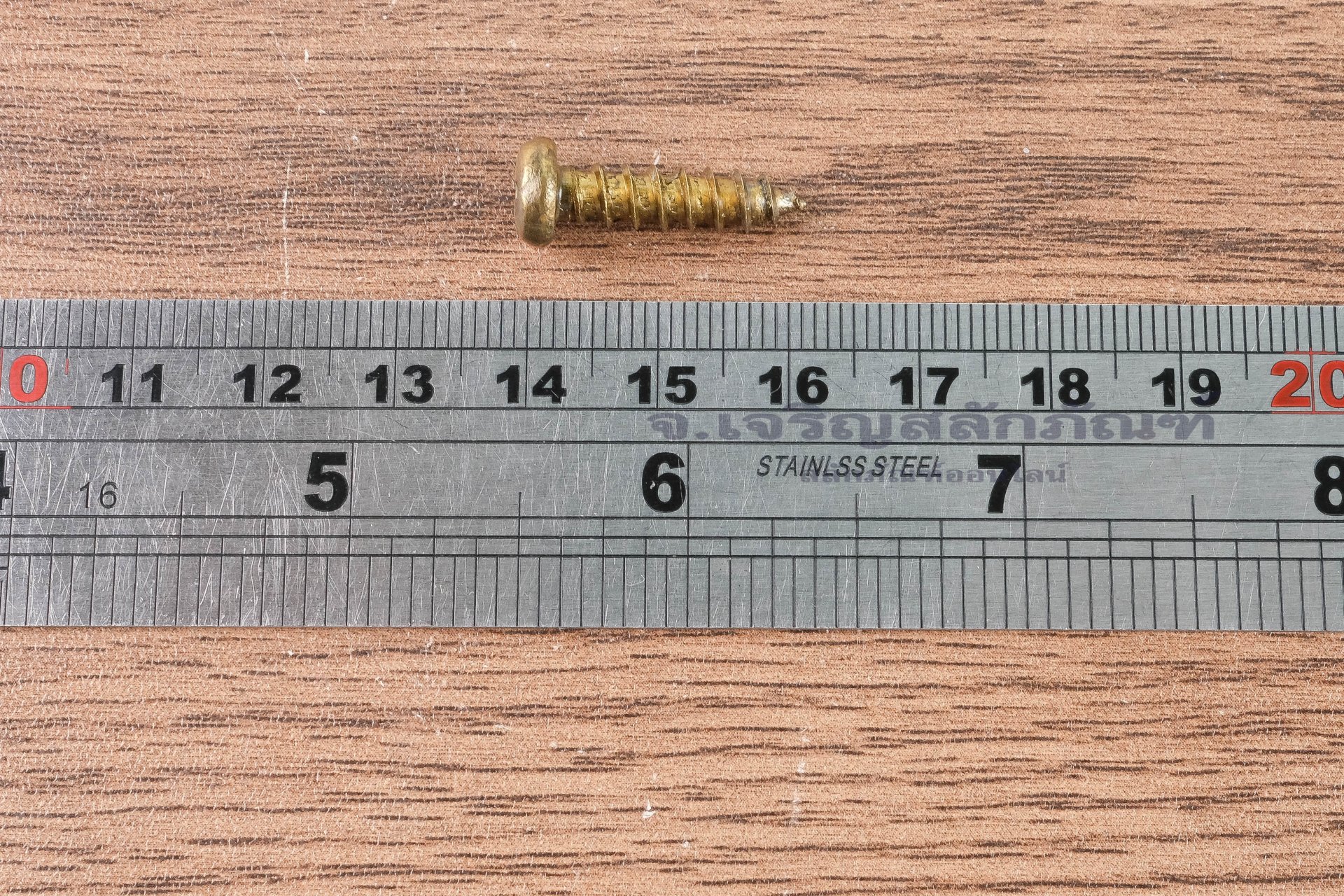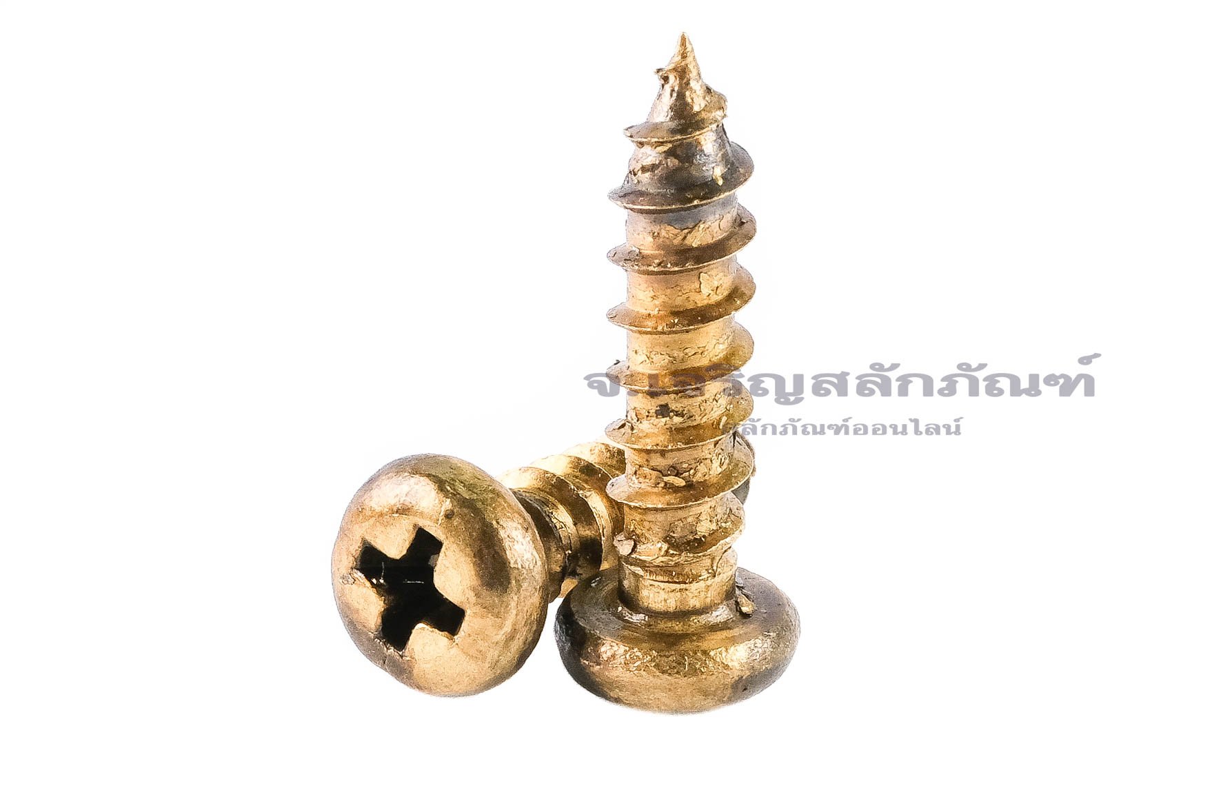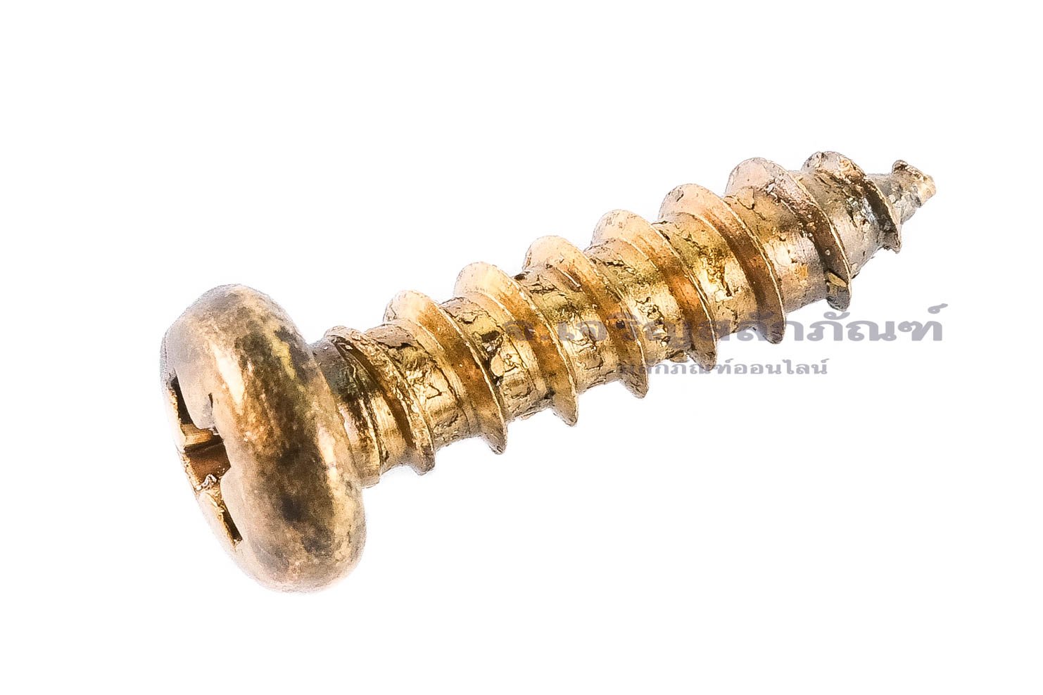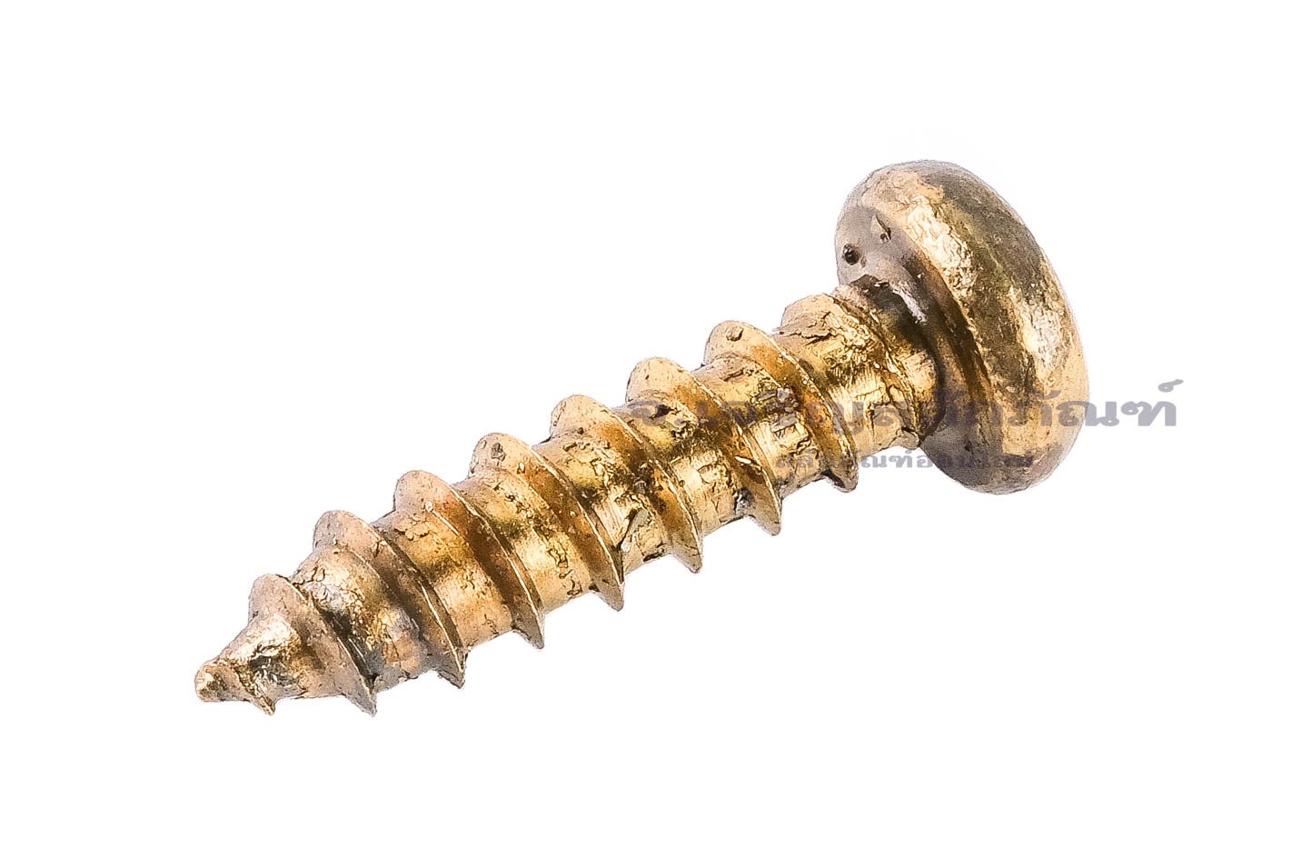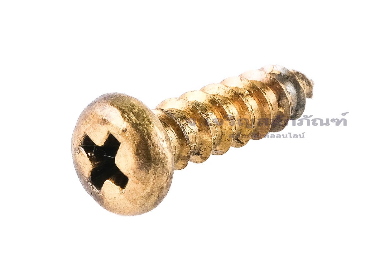 - เกรดคุณสมบัติของวัสดุ (Material Grade): Brass ทองเหลือง สีเหลืองทองเงา ไม่เป็นสนิม และทนต่อการกัดกร่อนได้ดีมาก สามารถเจาะเข้าเนื้อวัสดุอ่อน เช่น ไม้ พลาสติก หรือแผ่นโลหะบาง ๆ ได้ โดยไม่ต้องใช้พุกหรือน็อตตัวเมีย หัวกลมมีลักษณะนูน ใช้ไขควงแฉก (Phillips) ในการขัน