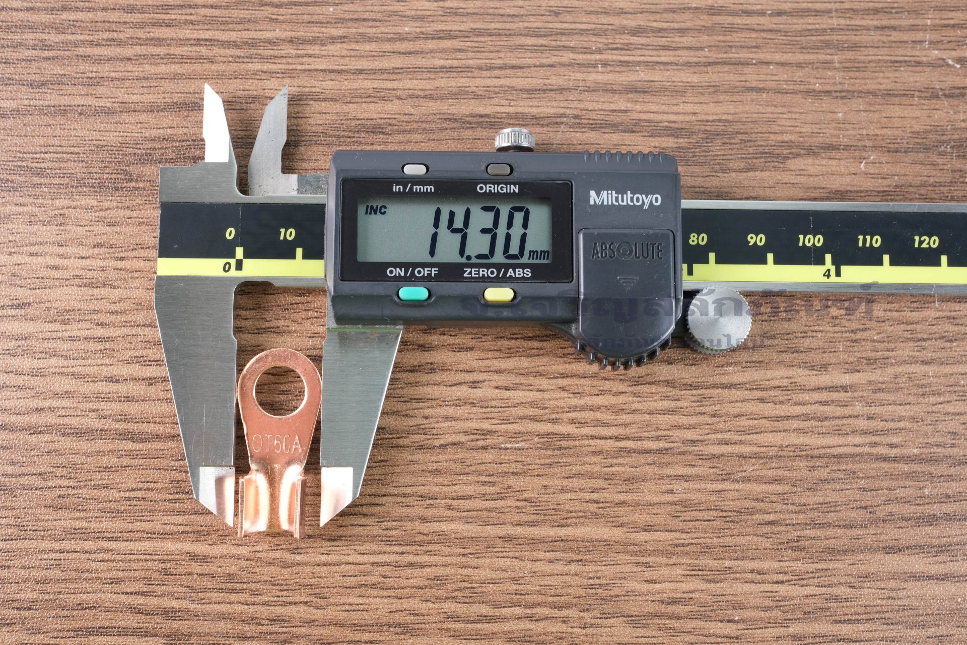 [E] หางปลาขั้วต่อแบต ทองแดง เกรดหนามาตรฐาน OT-60A ความกว้างแกนล็อกสายไฟ 9.4 mm ยาว 9.6 mm รูยึด 8.4 mm