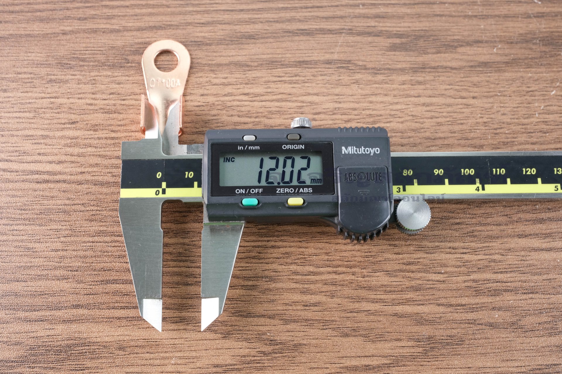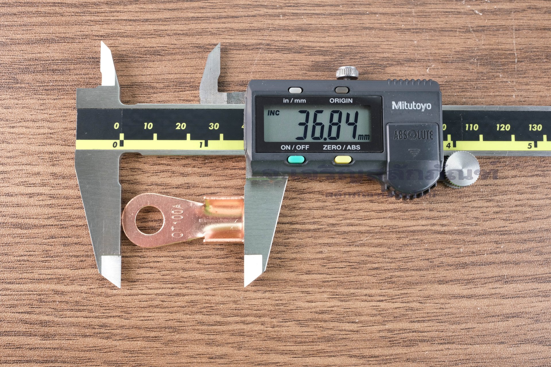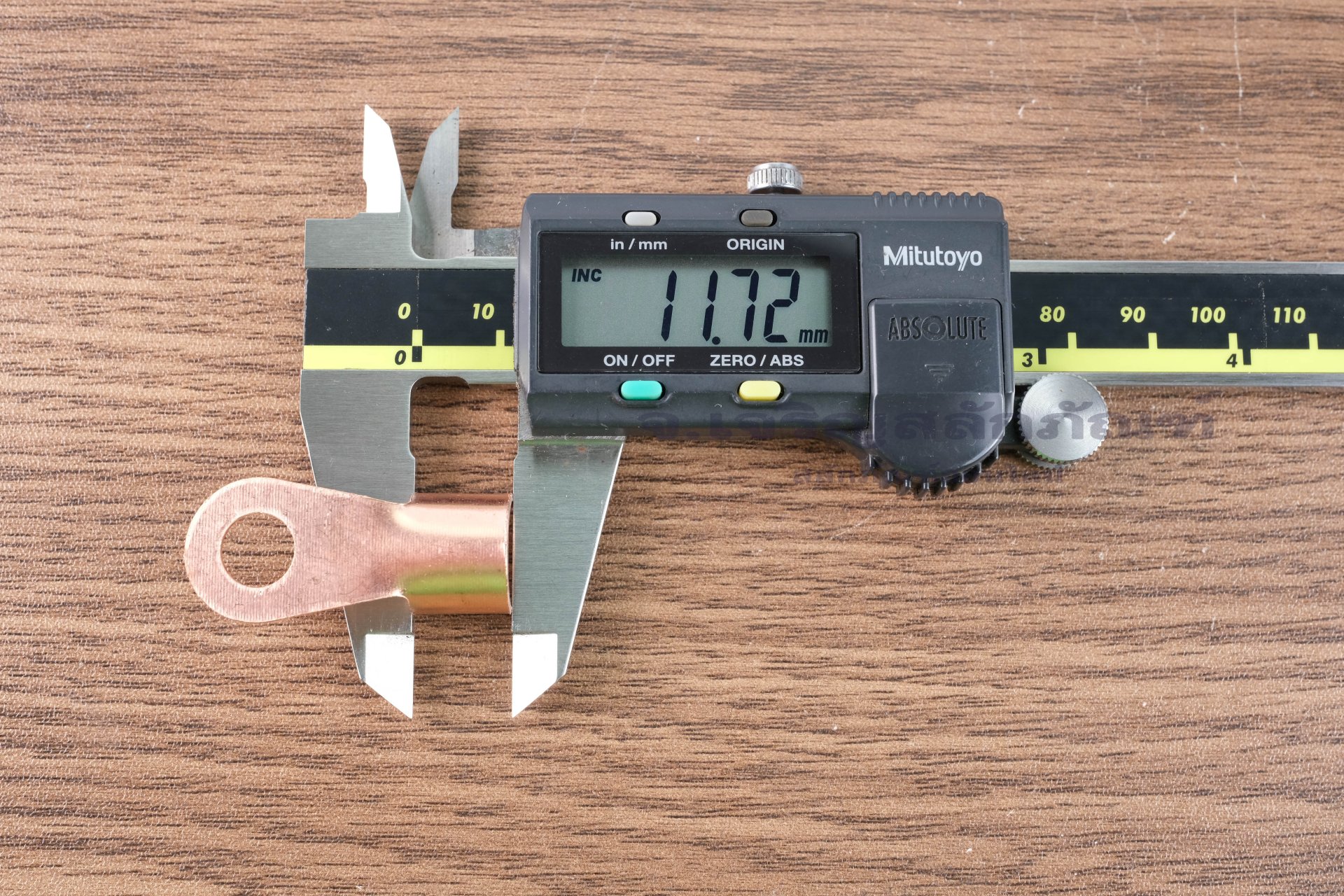 [E] หางปลาขั้วต่อแบต ทองแดง เกรดหนามาตรฐาน OT-100A ความกว้างแกนล็อกสายไฟ 11.5 mm ยาว 11.7 mm รูยึด 8.4 mm