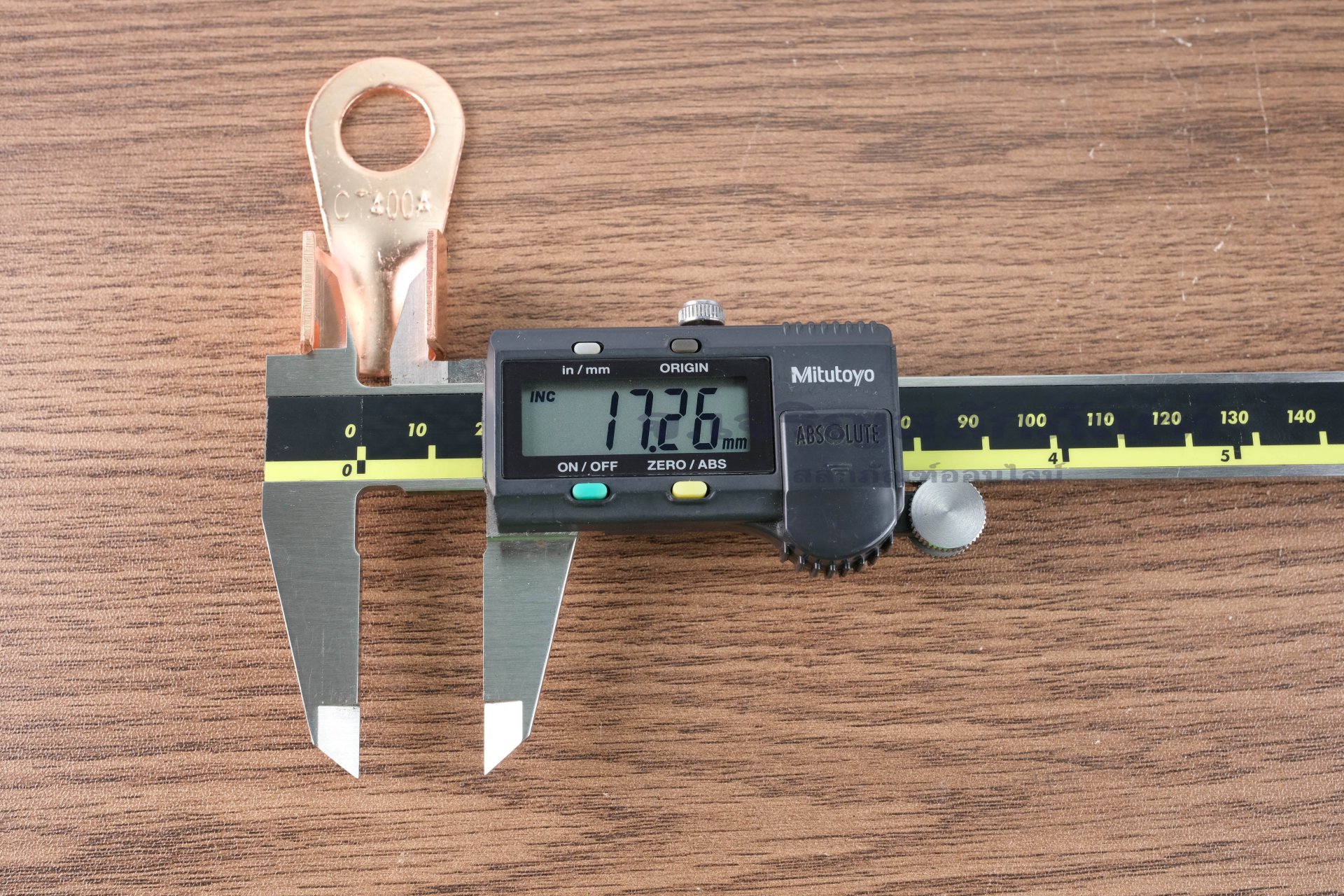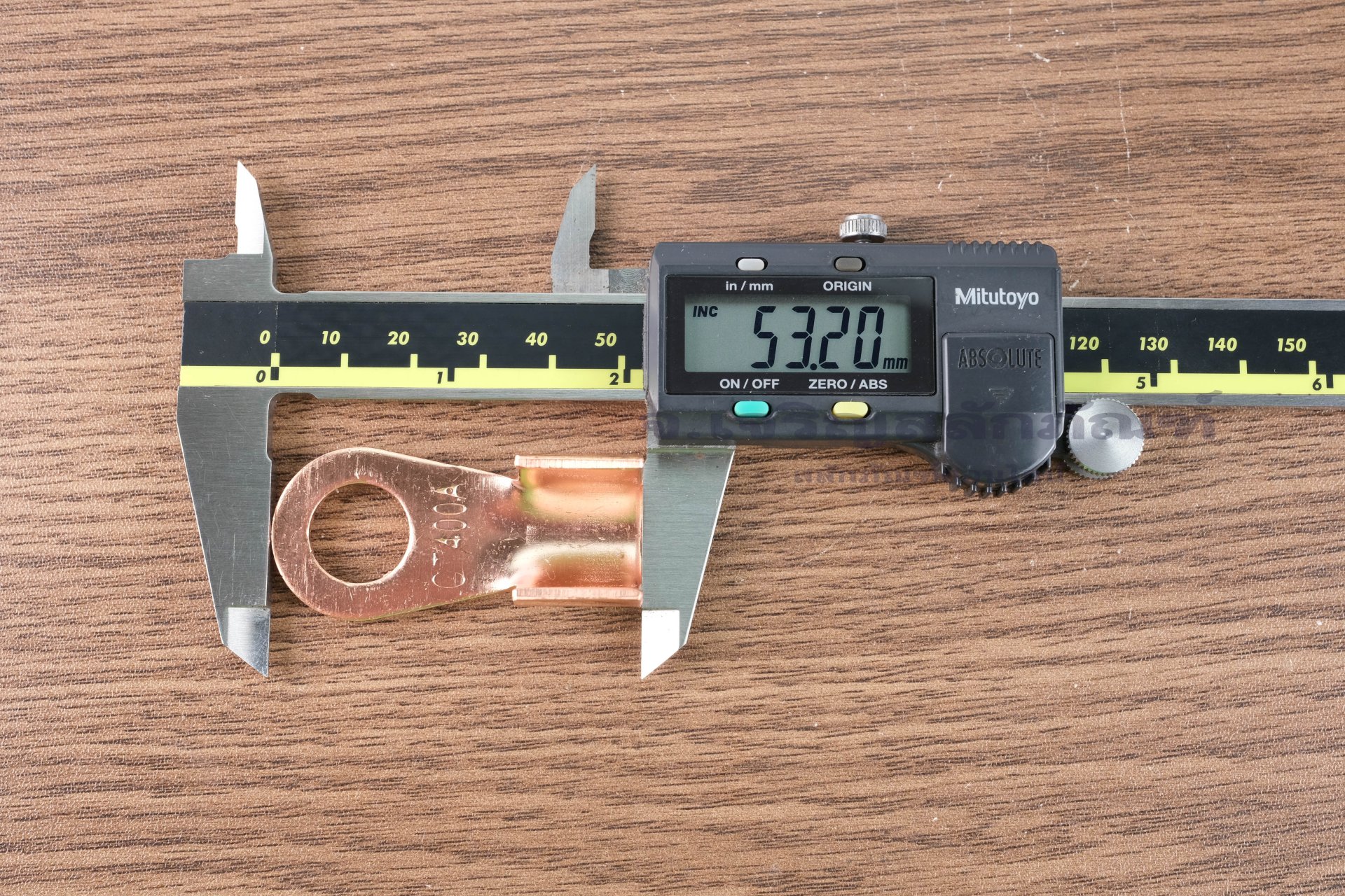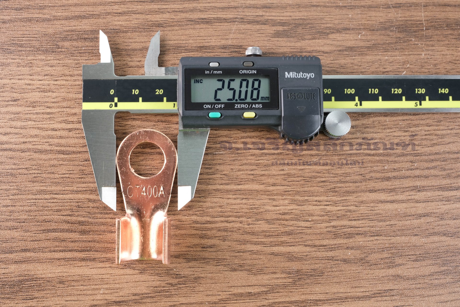 [E] หางปลาขั้วต่อแบต ทองแดง เกรดหนามาตรฐาน OT-400A ความกว้างแกนล็อกสายไฟ 17.8 mm ยาว 17.6 mm รูยึด 14.3 mm