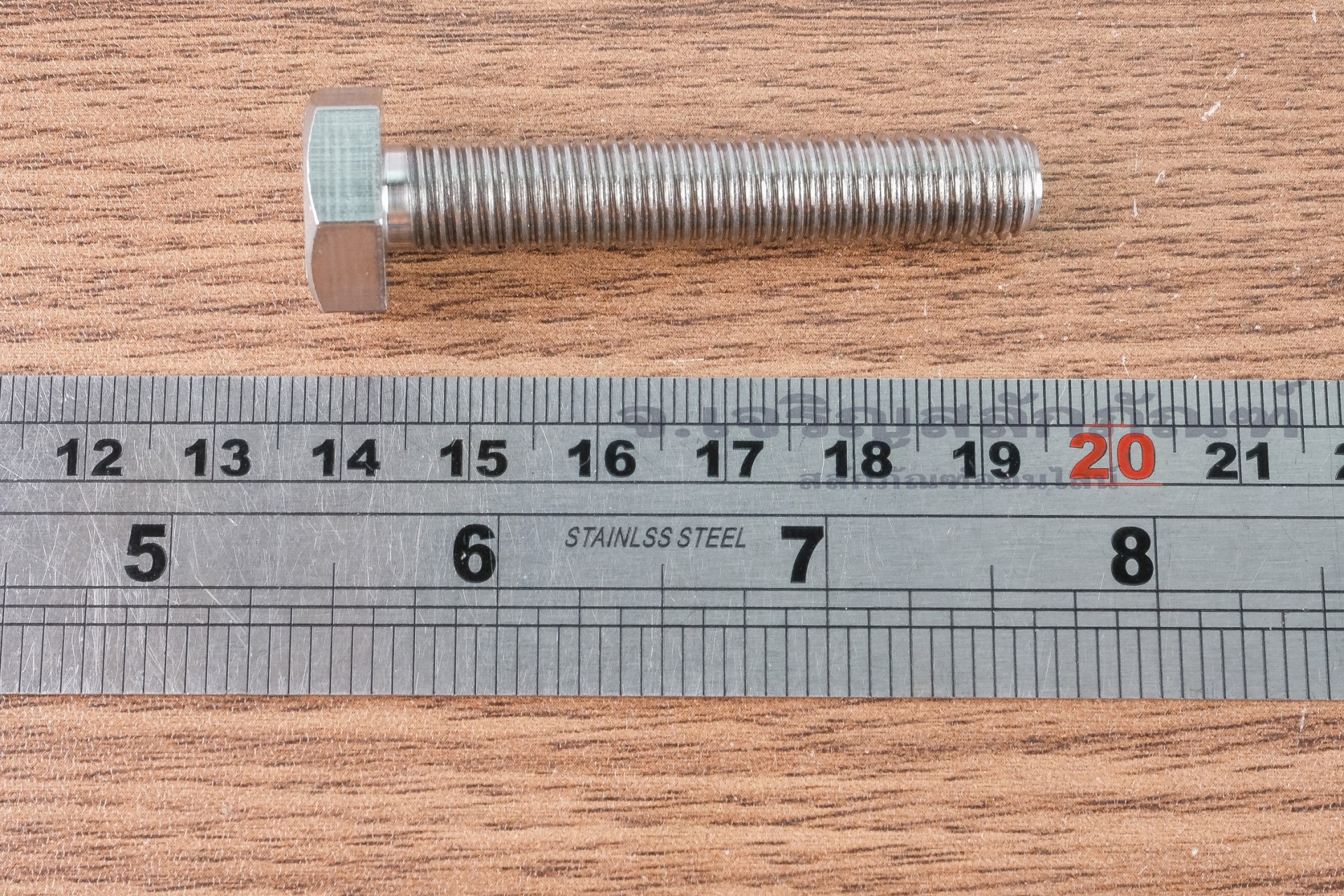 สกรูน็อตหัวเหลี่ยมสแตนเลส น็อตตัวผู้สแตนเลสขนาด M9x1.25x50 เกลียวตลอด