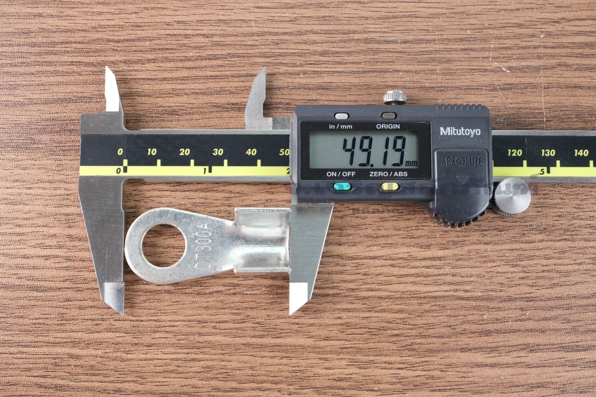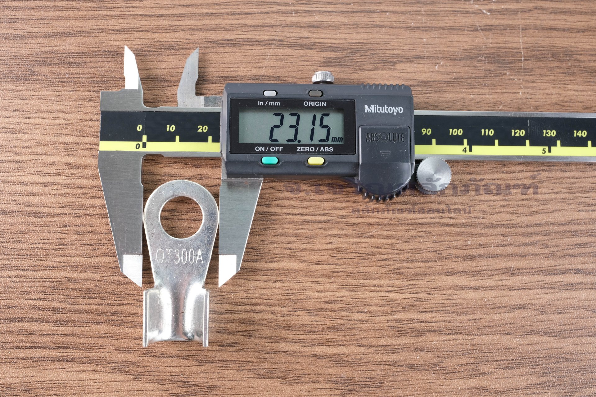 [E] หางปลาขั้วต่อแบต ทองแดงชุบดีบุก เกรดหนามาตรฐาน OT-300A ความกว้างแกนล็อกสายไฟ 16 mm ยาว 16.1 mm รูยึด 12.9 mm