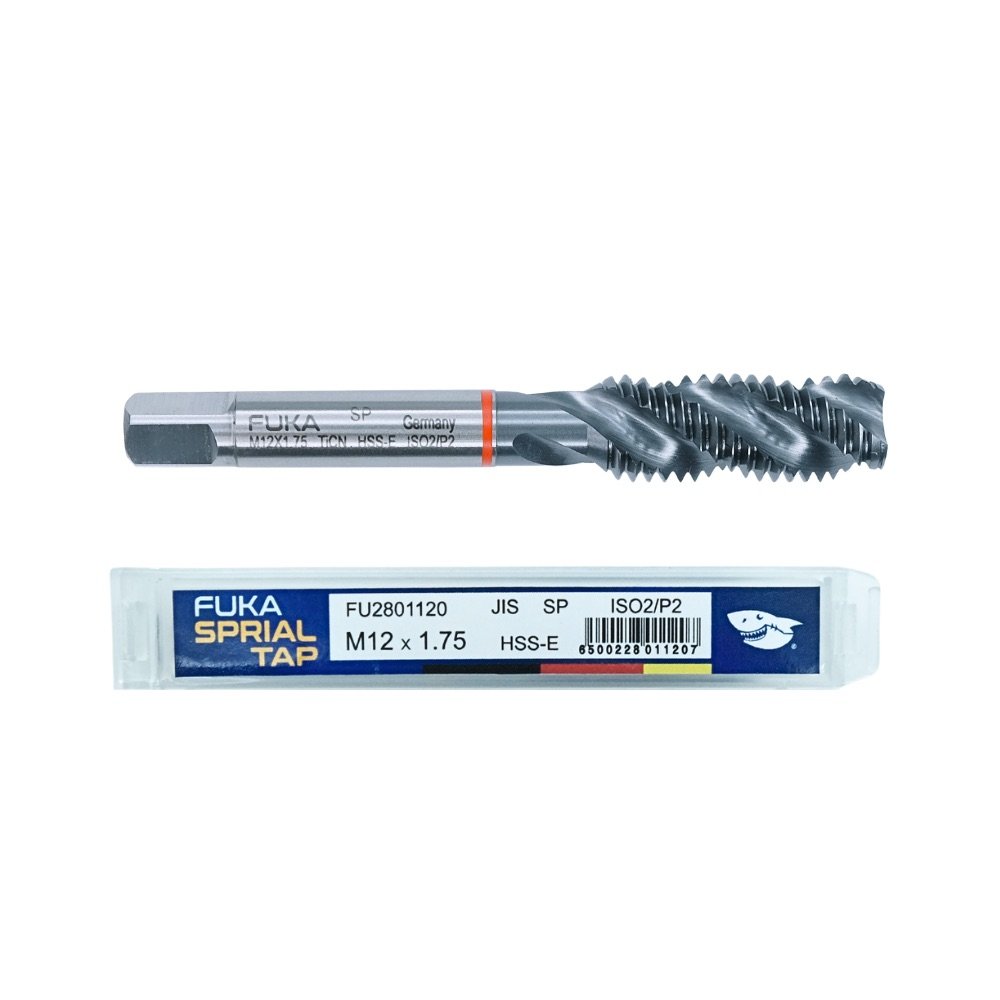 ดอกต๊าปเลื้อย-ต๊าปเครื่อง FUKA HSS-E TiCN เจาะสแตนเลส-เหล็กแข็ง M5x0.8 Spiral Machine Tap HSS-E