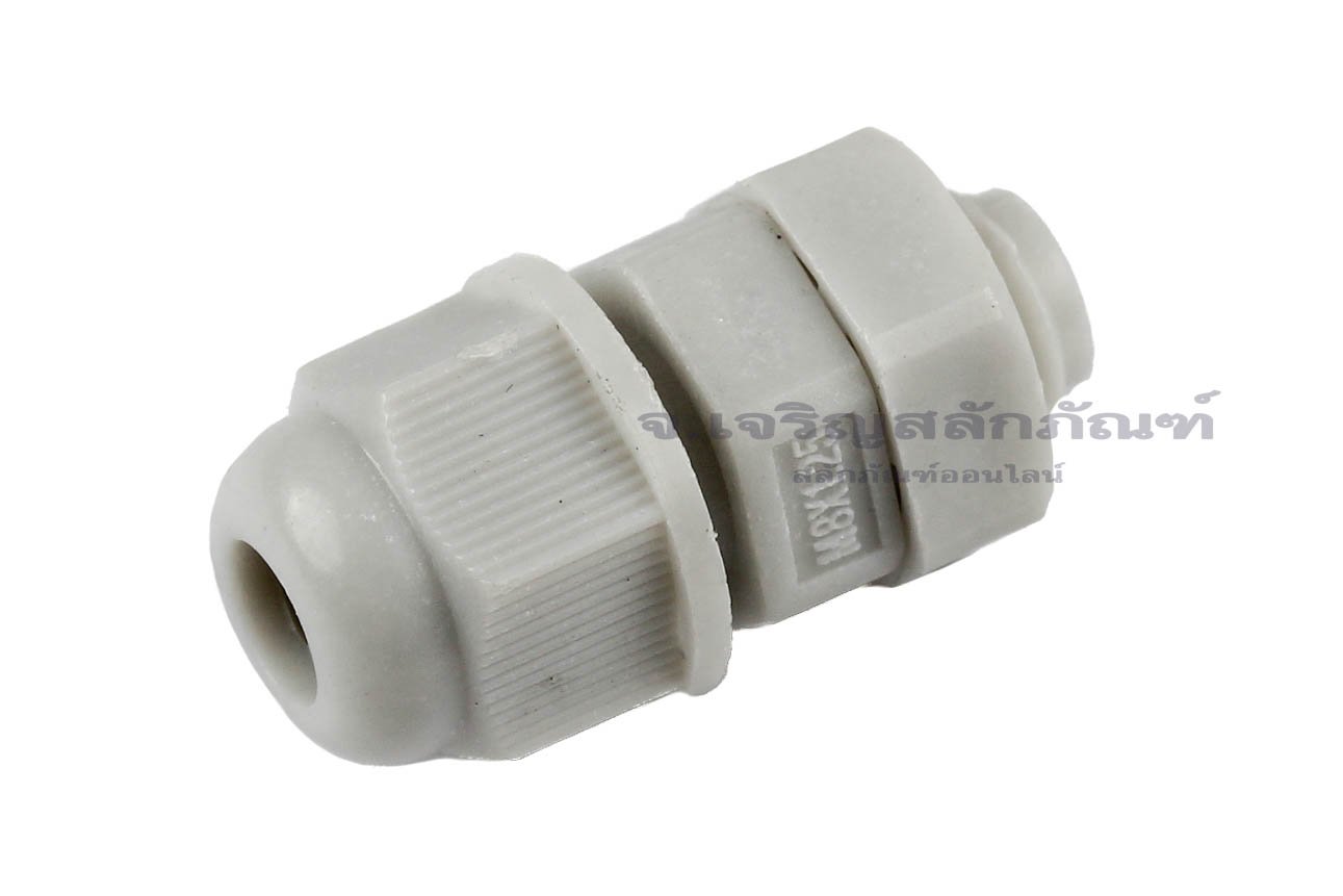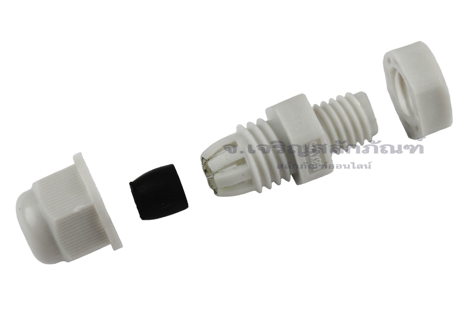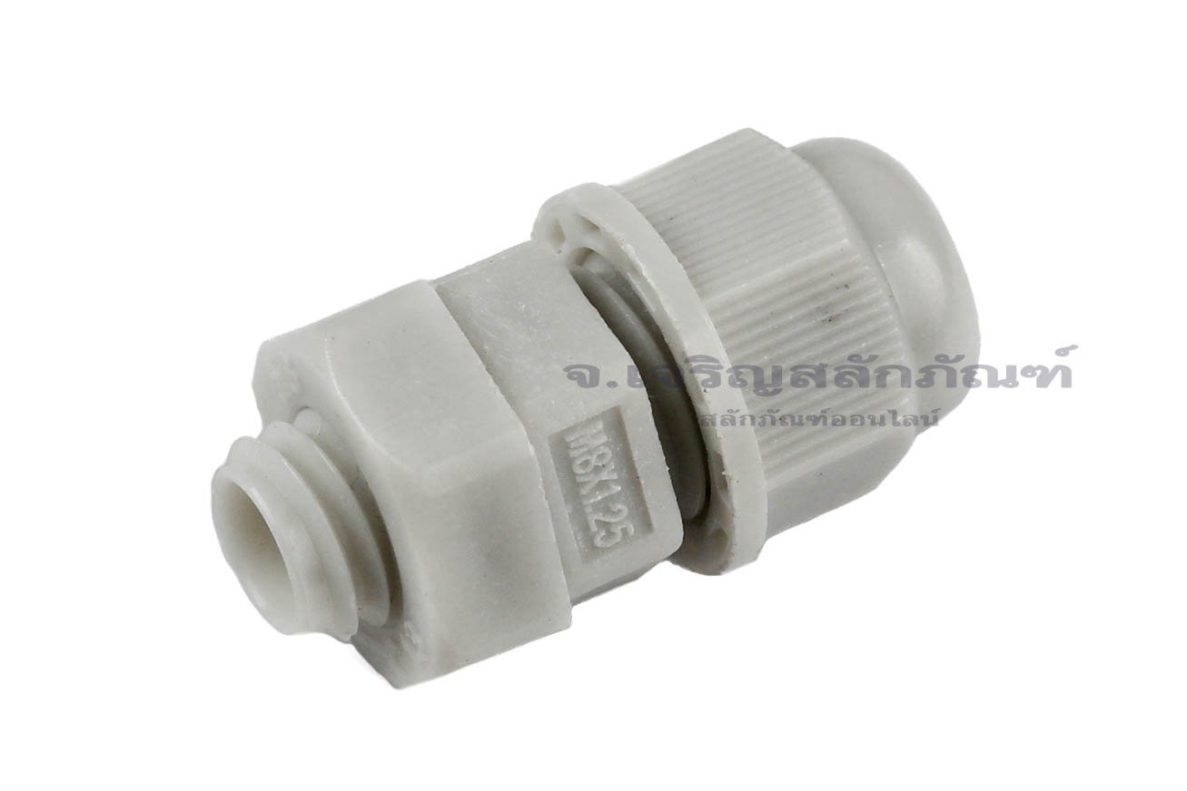 [E] เคเบิ้ลแกลนด์ Cable Gland พลาสติกไนล่อนกันน้ำ สีเทาขาว M8x1.50 รูล็อกสายไฟ 4.4 mm
