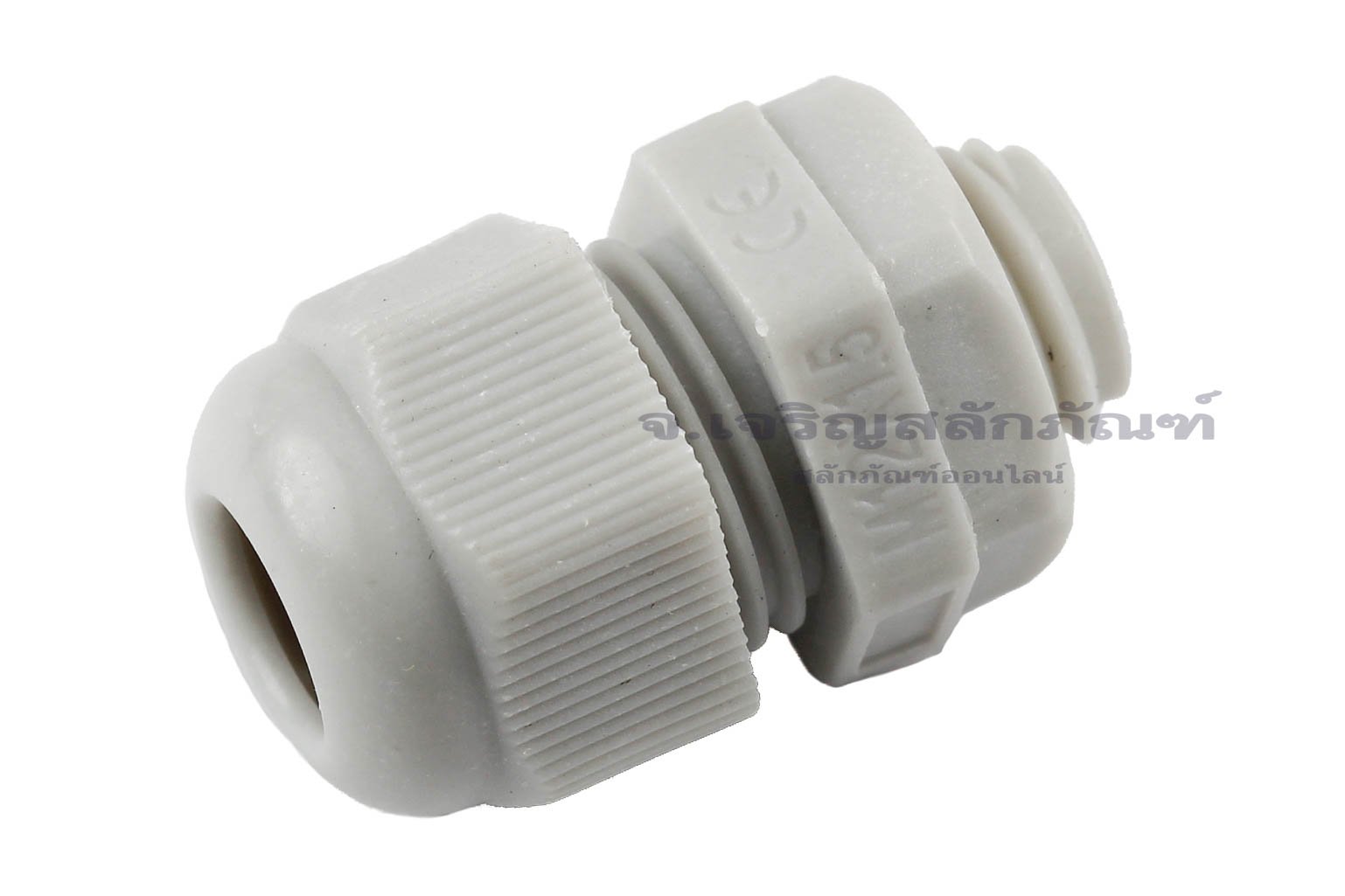 [E] เคเบิ้ลแกลนด์ Cable Gland พลาสติกไนล่อนกันน้ำ หัวใหญ่ สีเทาขาว M12x1.50 รูล็อกสายไฟ 9.5 mm