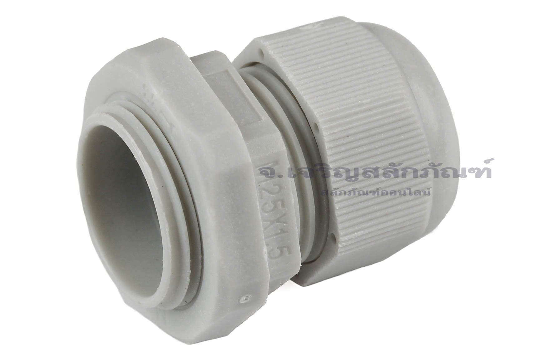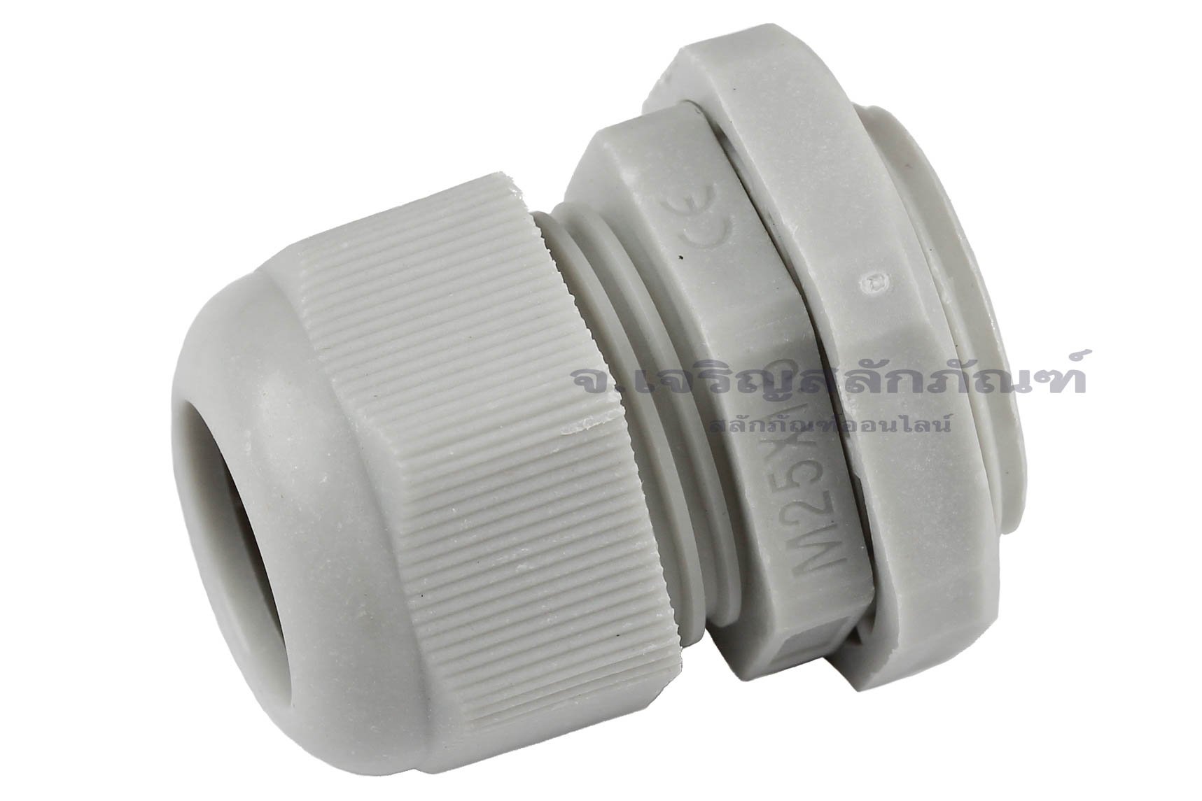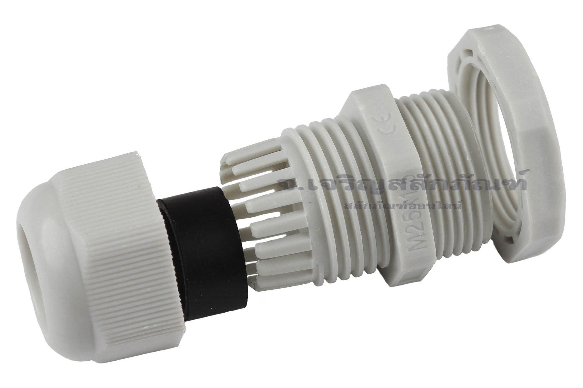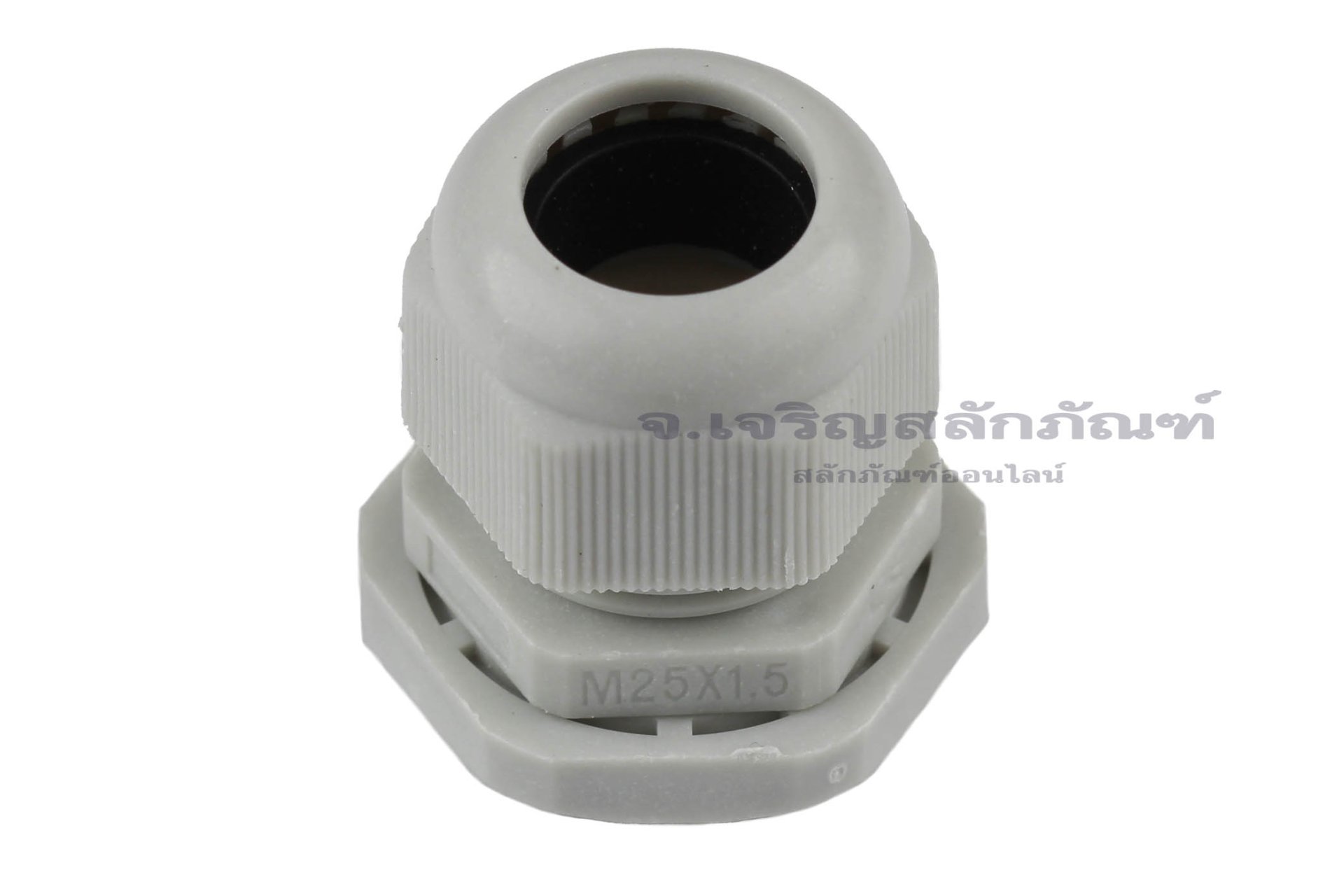 [E] เคเบิ้ลแกลนด์ Cable Gland พลาสติกไนล่อนกันน้ำ สีเทาขาว M25x1.50 รูล็อกสายไฟ 15.7 mm