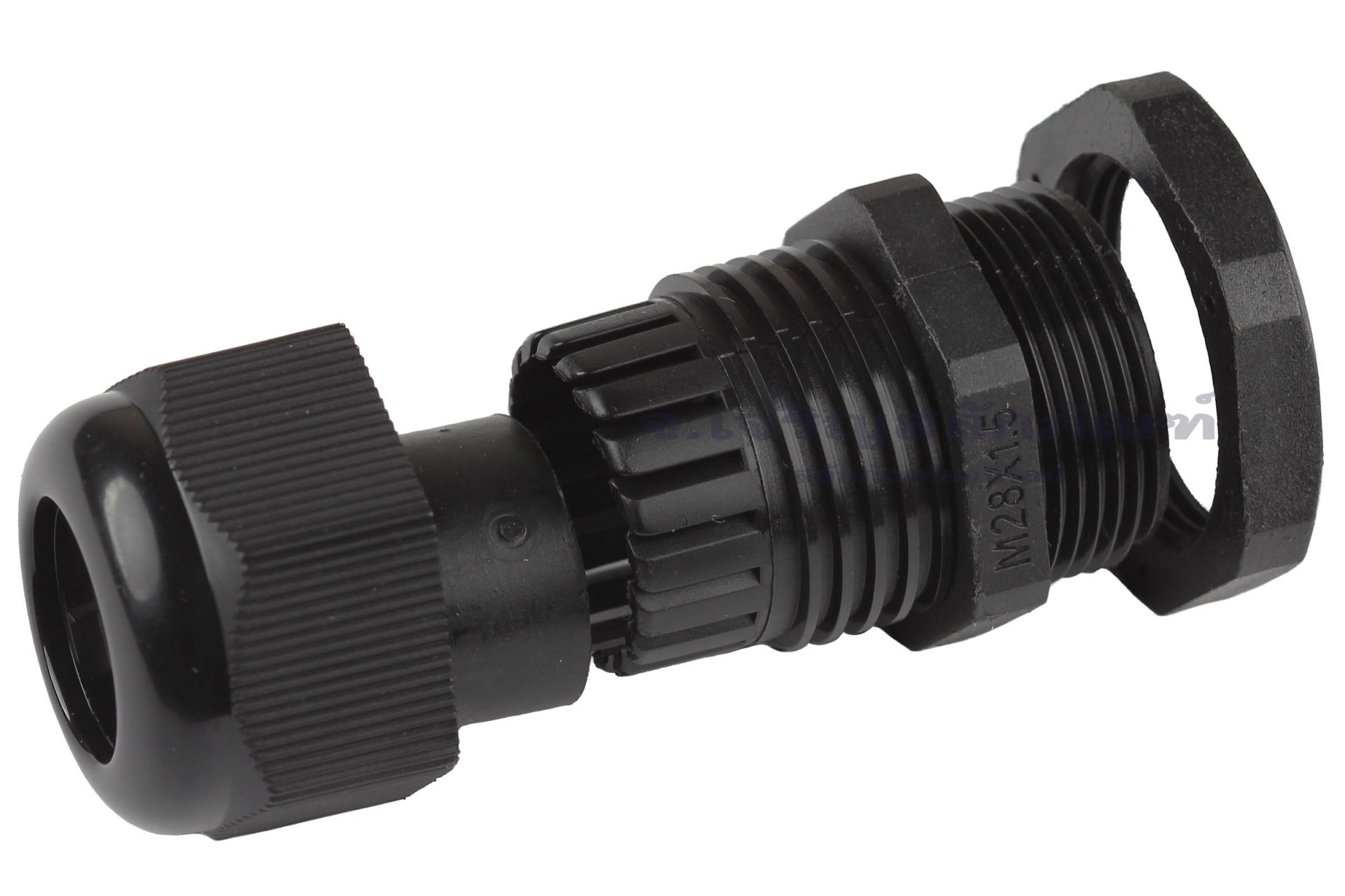 [E] เคเบิ้ลแกลนด์ Cable Gland พลาสติกไนล่อนกันน้ำ สีดำ M28x1.50 รูล็อกสายไฟ 19.1 mm