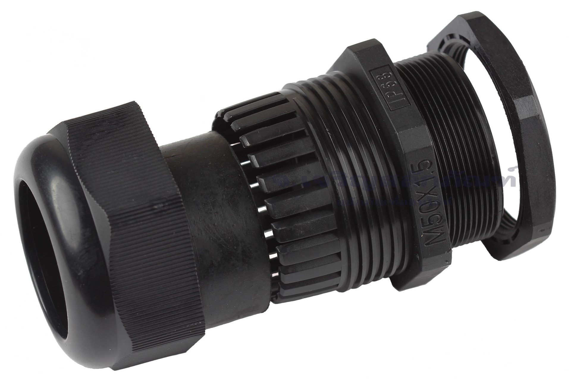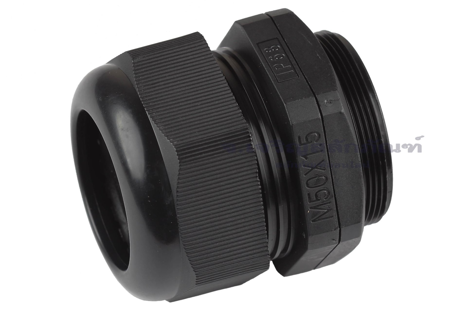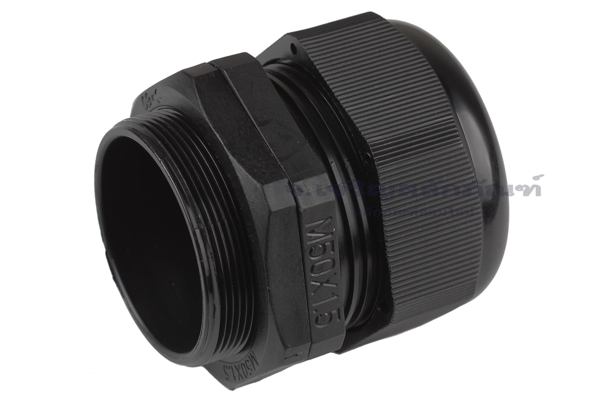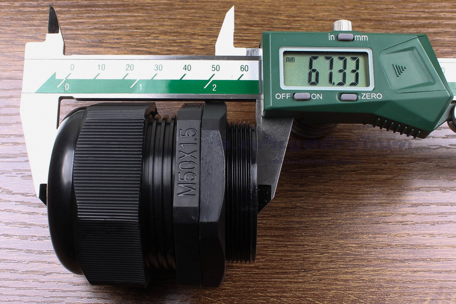 [E] เคเบิ้ลแกลนด์ Cable Gland พลาสติกไนล่อนกันน้ำ สีดำ M50x1.50 รูล็อกสายไฟ 41.4 mm