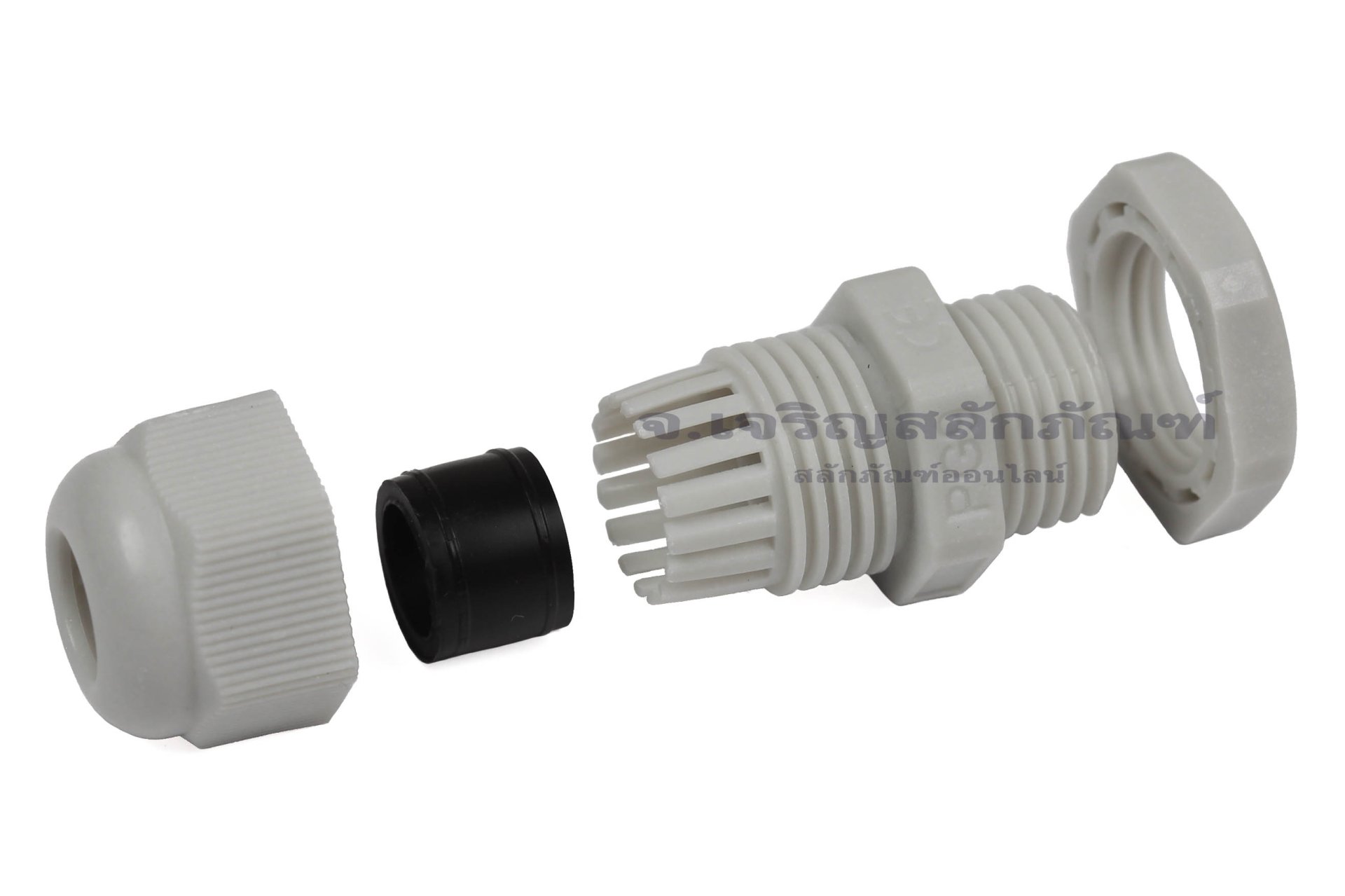 เคเบิ้ลแกลนด์ Cable Gland พลาสติกไนล่อนกันน้ำ สีเทาขาว PG9 - Nylon Plastic Cable Waterproof Connector Sealing Terminal Fixing Gland : Light Gray PG9