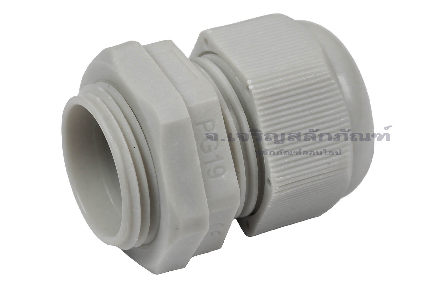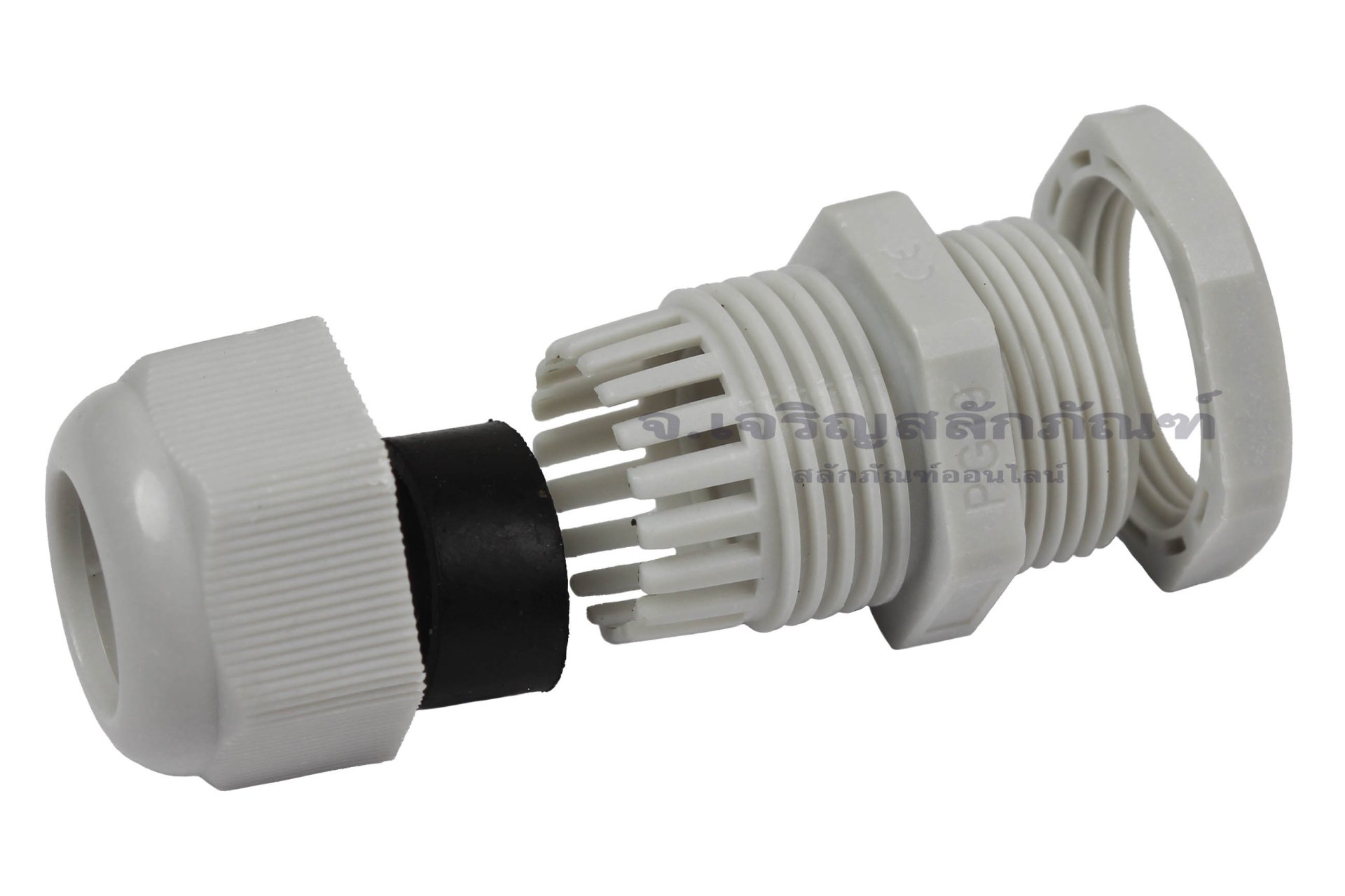 เคเบิ้ลแกลนด์ Cable Gland พลาสติกไนล่อนกันน้ำ สีเทาขาว PG19 - Nylon Plastic Cable Waterproof Connector Sealing Terminal Fixing Gland : Light Gray PG19