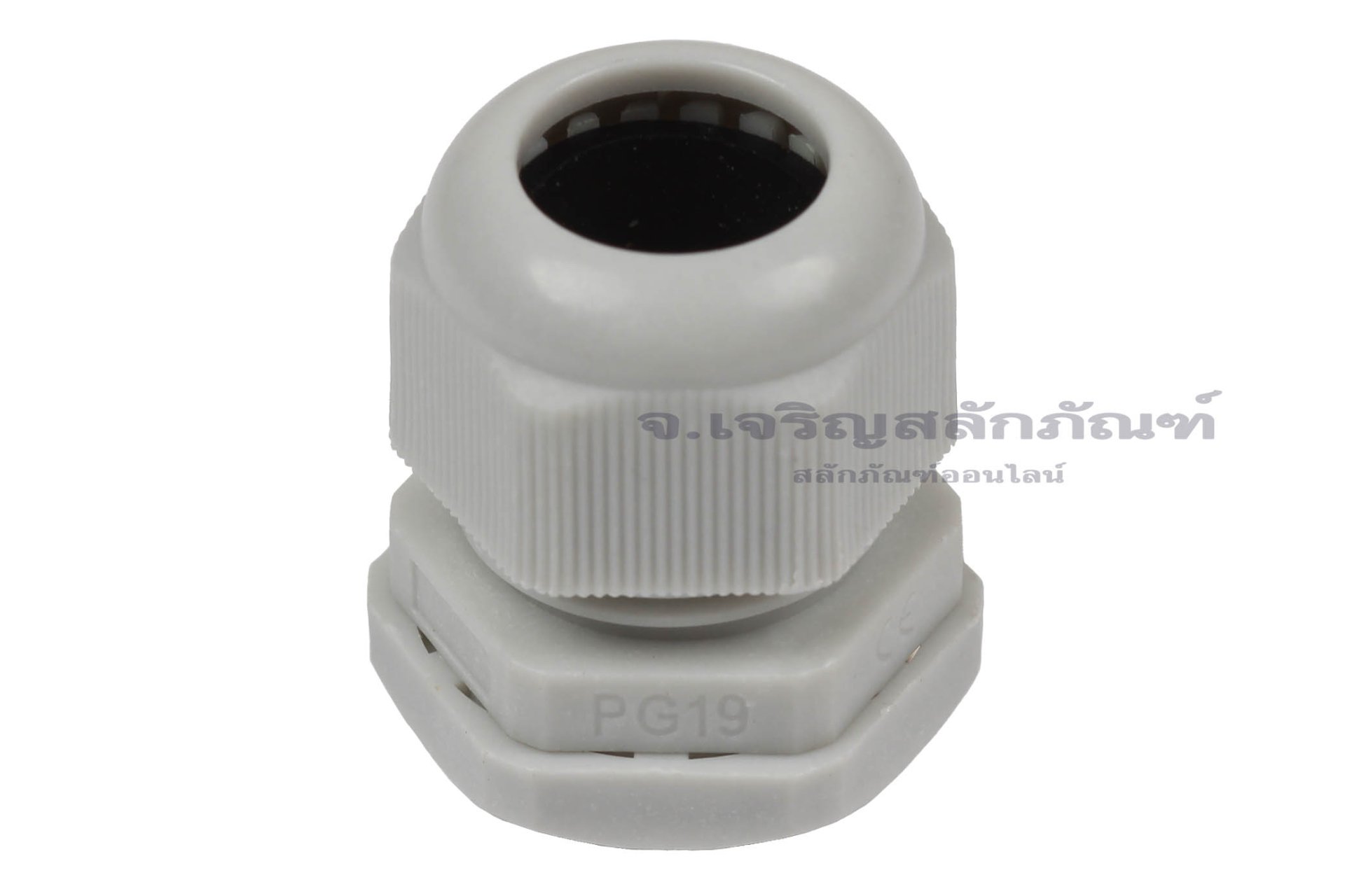[E] เคเบิ้ลแกลนด์ Cable Gland พลาสติกไนล่อนกันน้ำ สีเทาขาว PG19 รูล็อกสายไฟ 16 mm