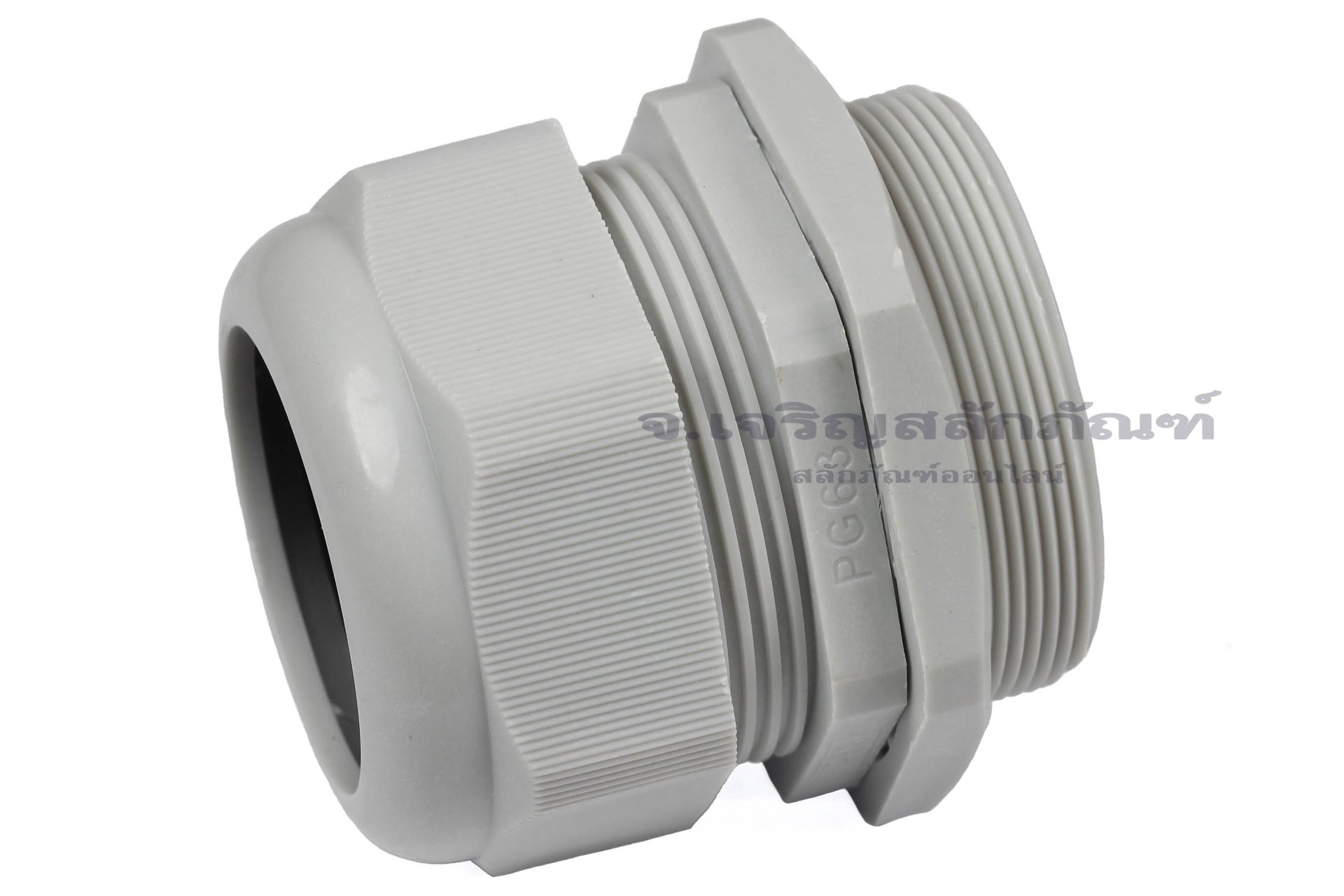 เคเบิ้ลแกลนด์ Cable Gland พลาสติกไนล่อนกันน้ำ สีเทาขาว PG63 - Nylon Plastic Cable Waterproof Connector Sealing Terminal Fixing Gland : Light Gray PG63