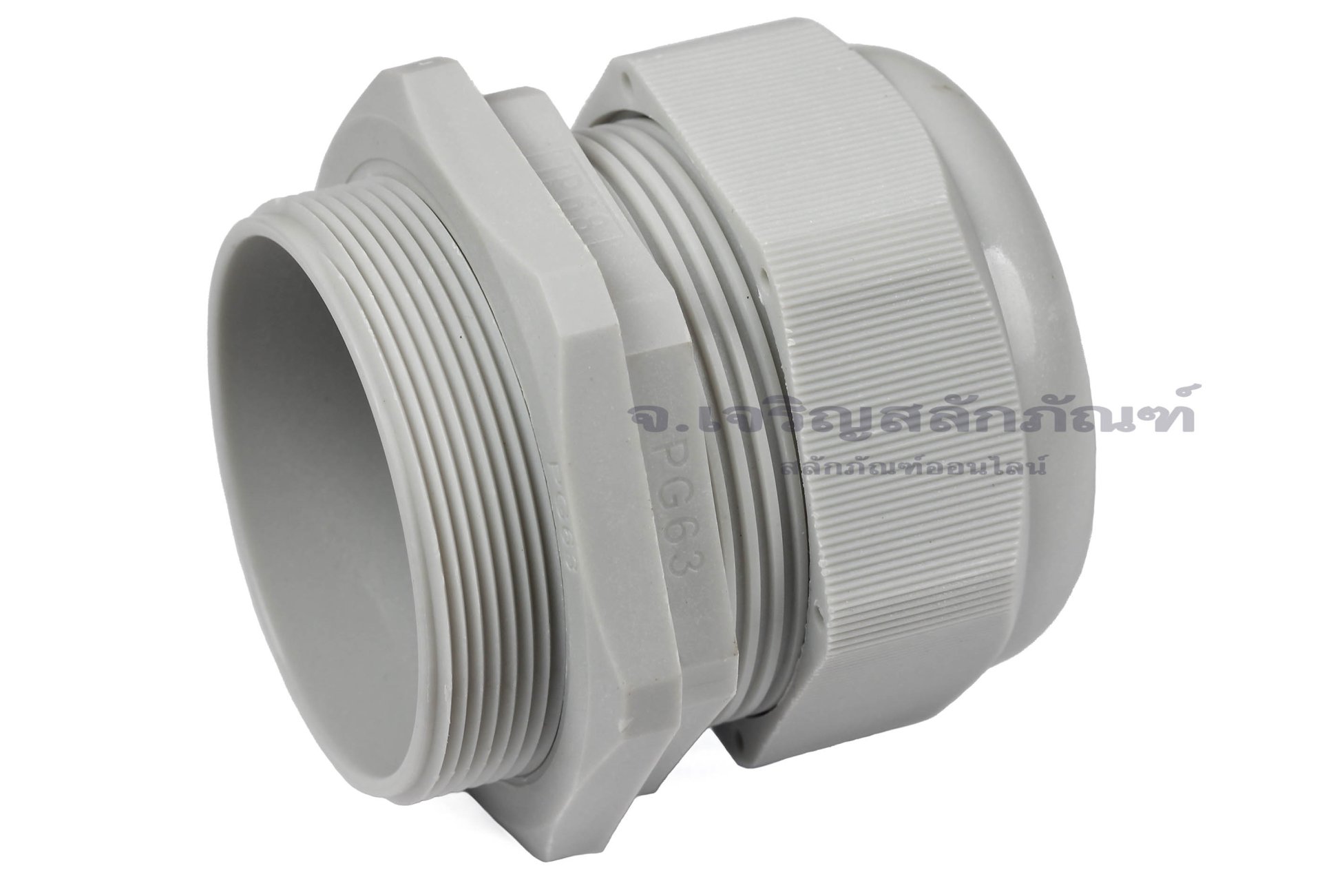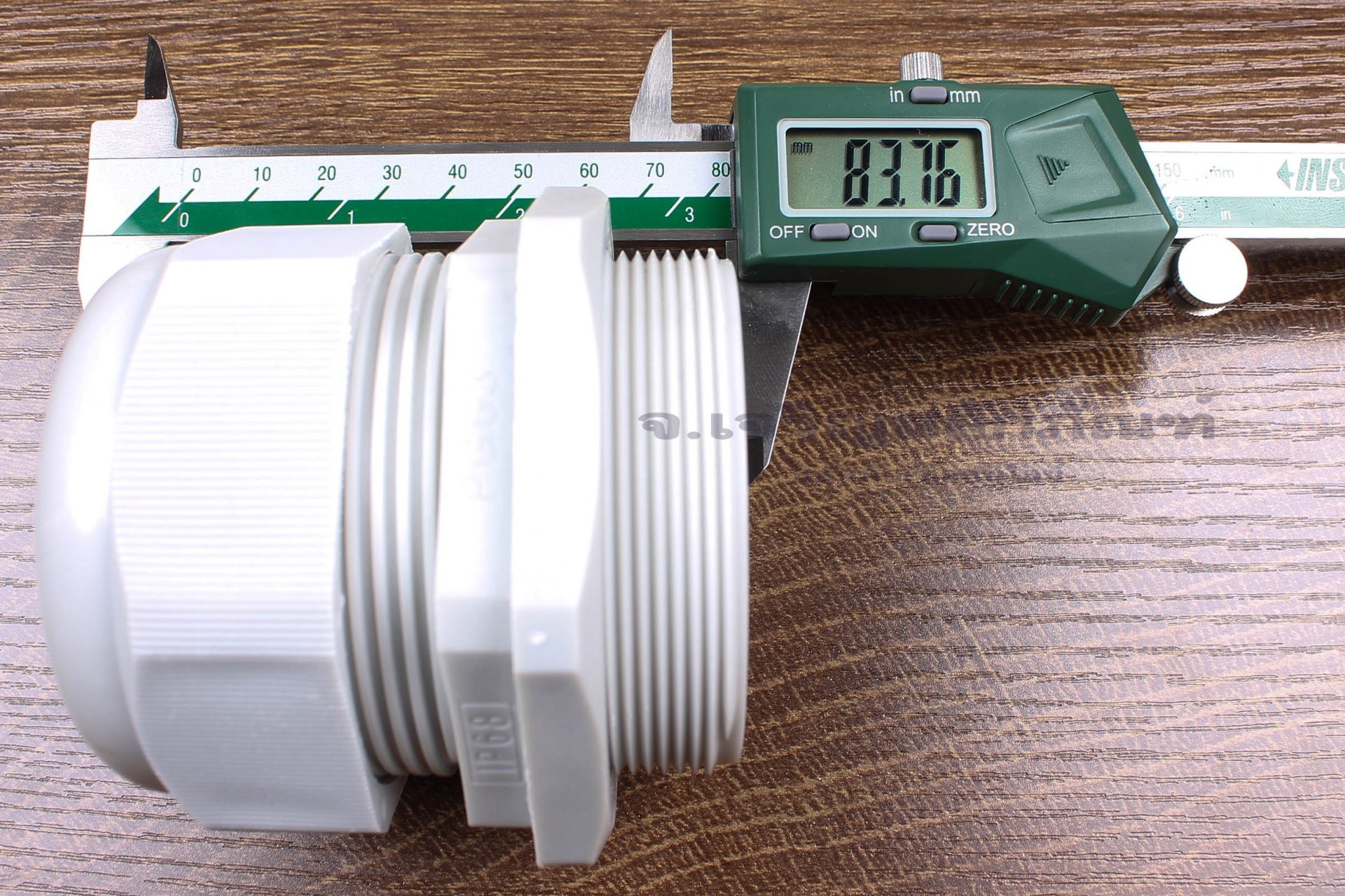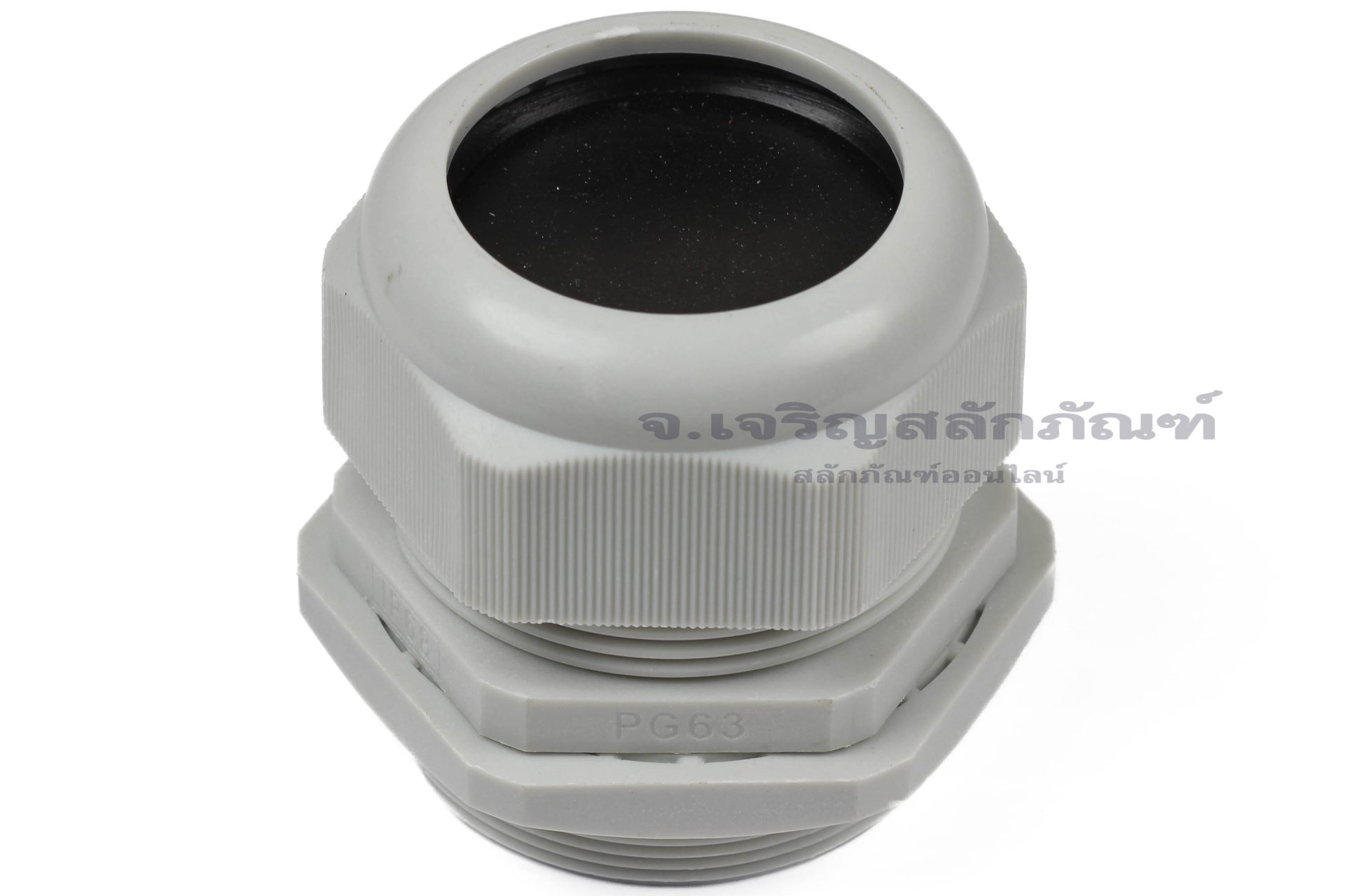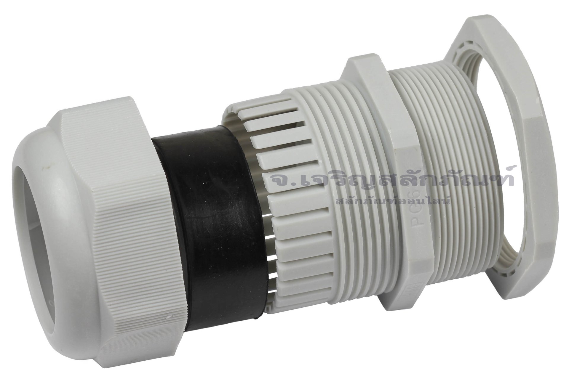 [E] เคเบิ้ลแกลนด์ Cable Gland พลาสติกไนล่อนกันน้ำ สีเทาขาว PG63 รูล็อกสายไฟ 54.8 mm