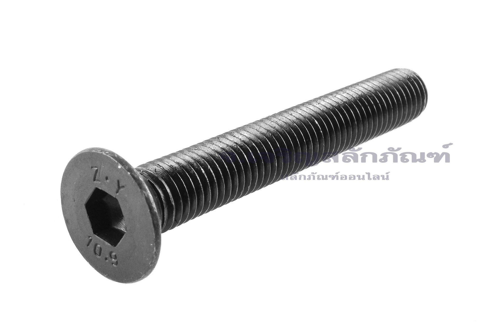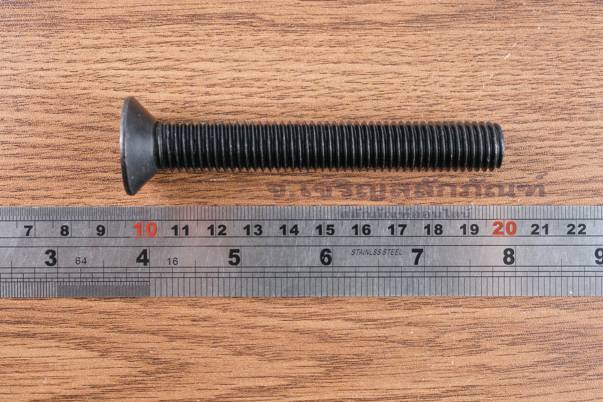 น็อตหัวจมเตเปอร์ดำเกลียวตลอด เกรด 10.9 Carbon Steel Hex Socket Taper Head Screw M14x100