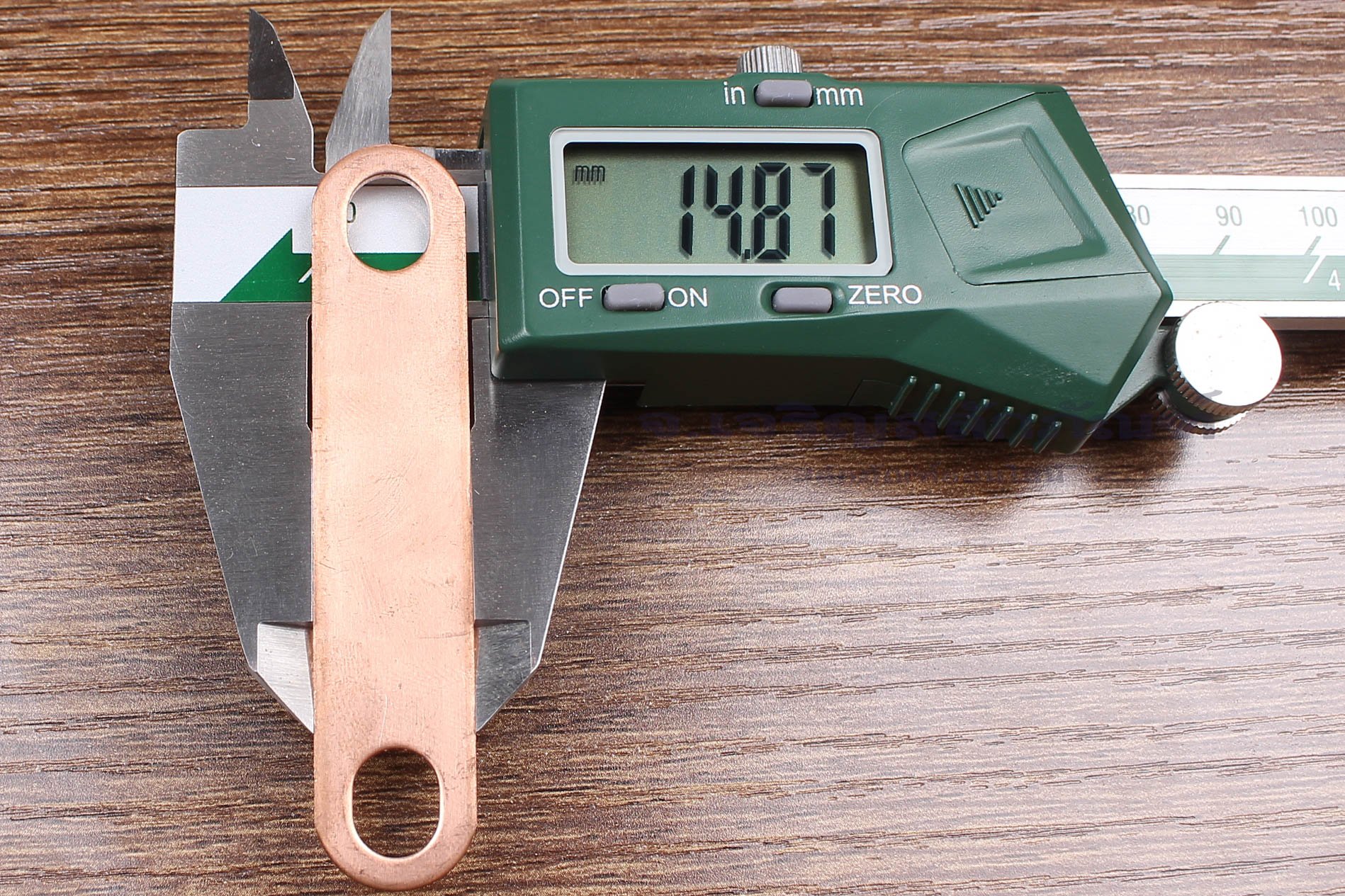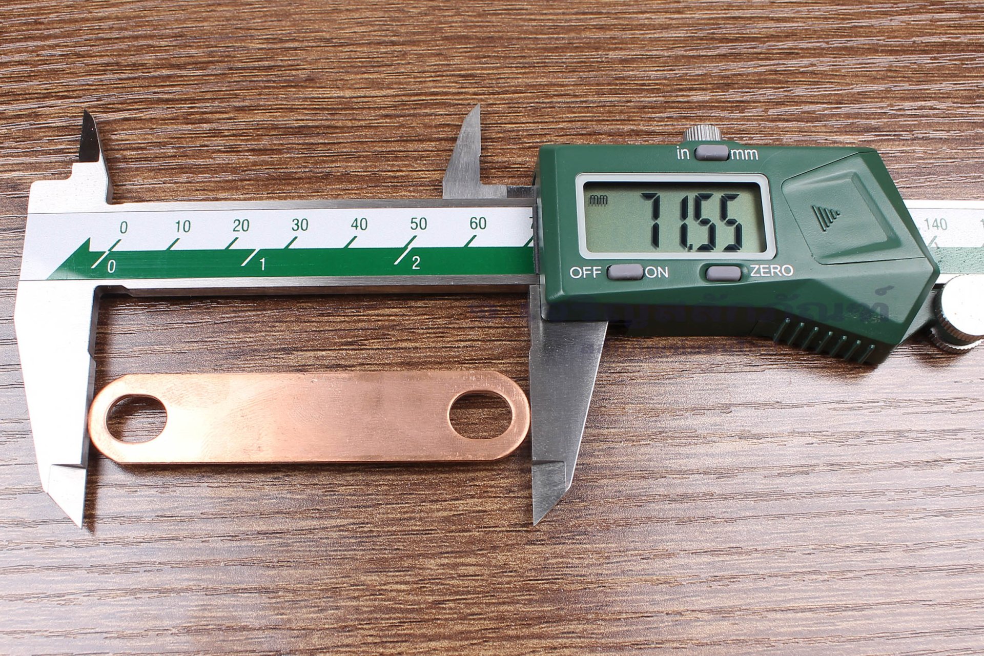 บัสบาร์ ทองแดง 71x1.5x15 ขนาดรู 8x10 mm ระยะรู 55 mm - Pure Copper Bus Bar Connector : 71x1.5x15, holes distance 55 mm, holes 8x10 mm