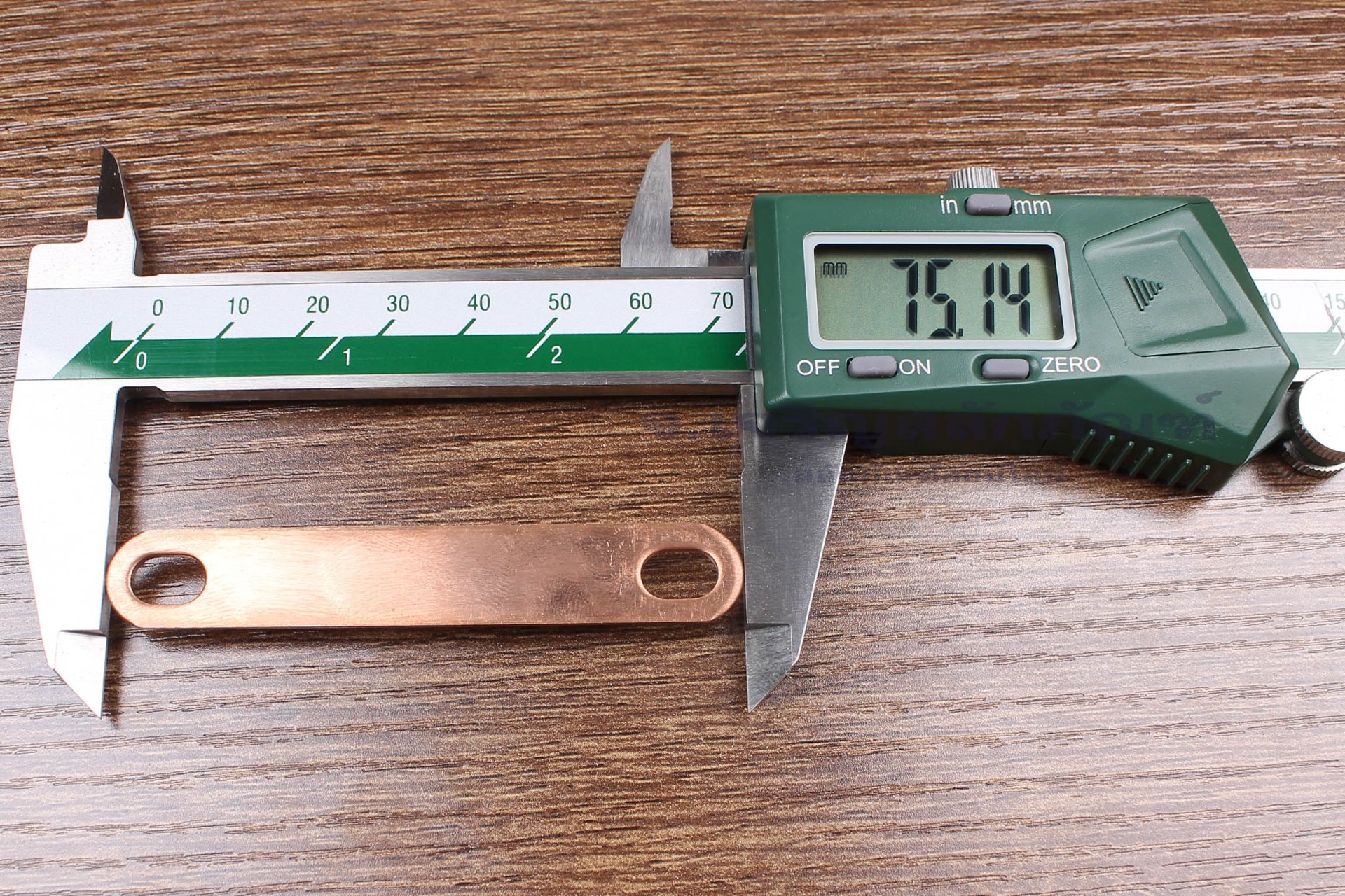 Pure Copper Bus Bar Connector : 75x1.5x12, holes distance 60 mm, holes 6x9 mm