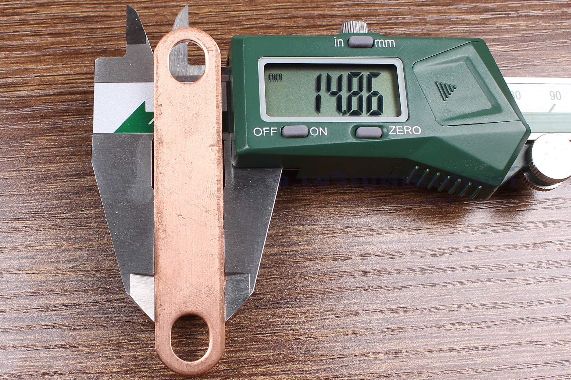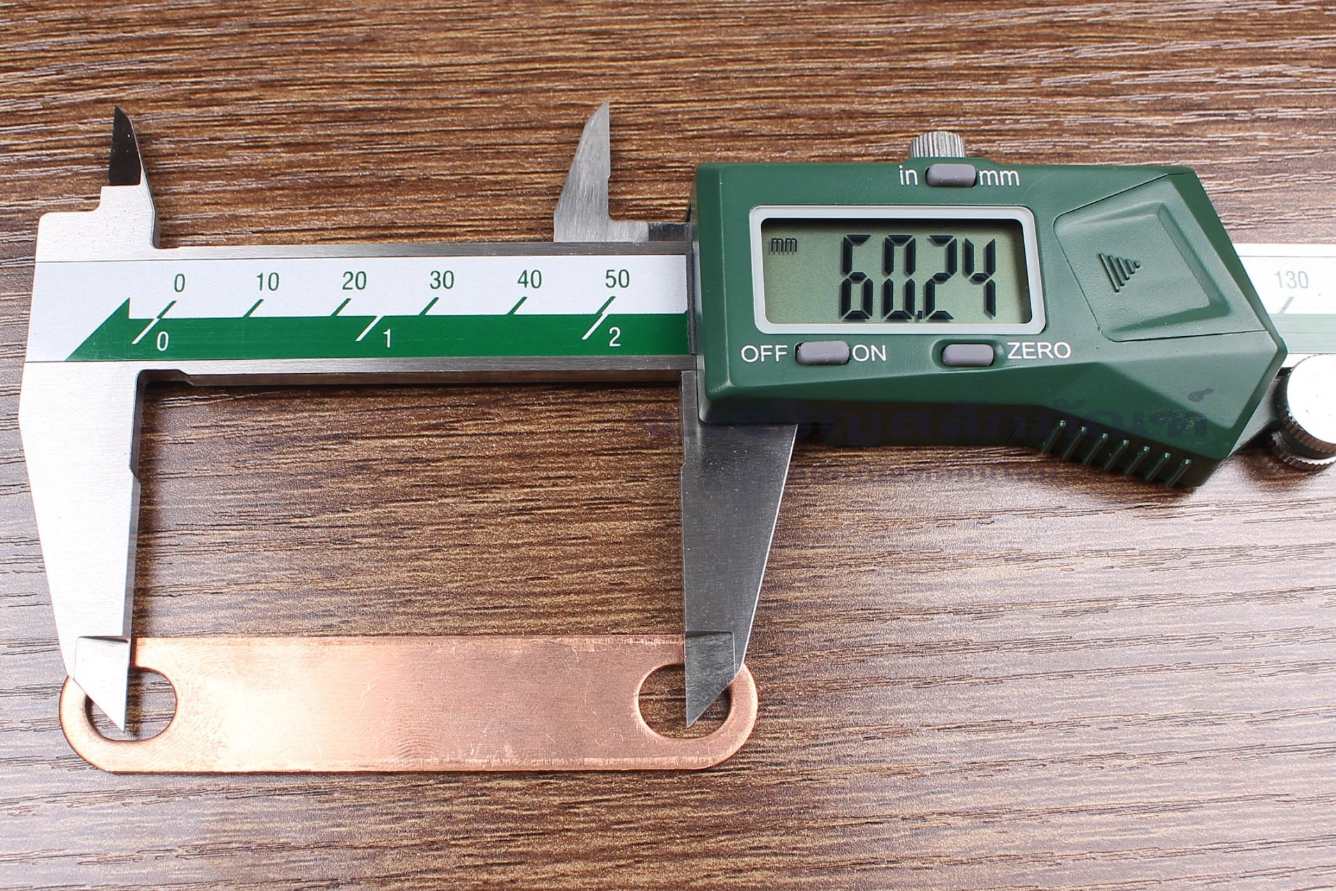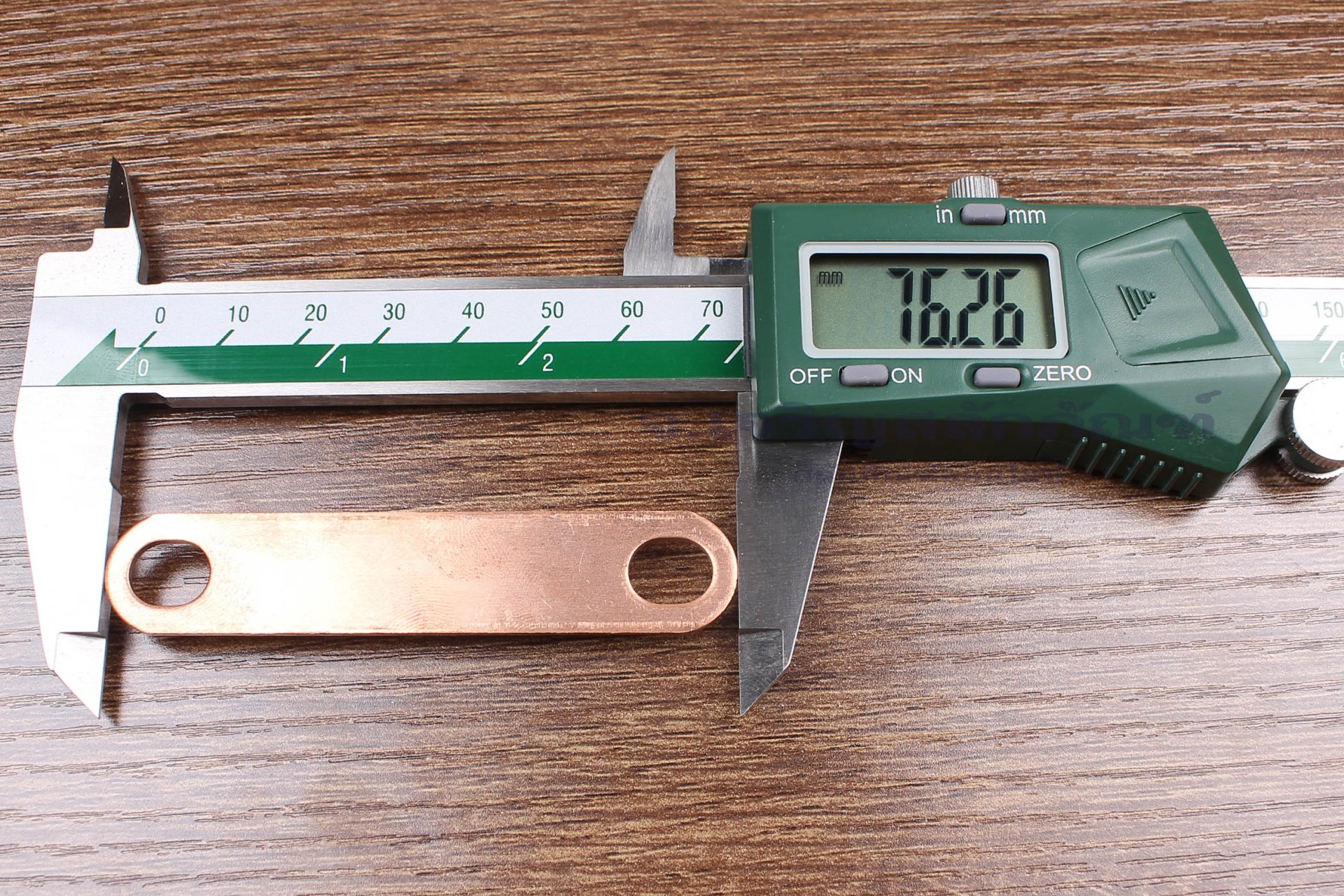 Pure Copper Bus Bar Connector : 76x1.5x15, holes distance 60 mm, holes 8x10 mm