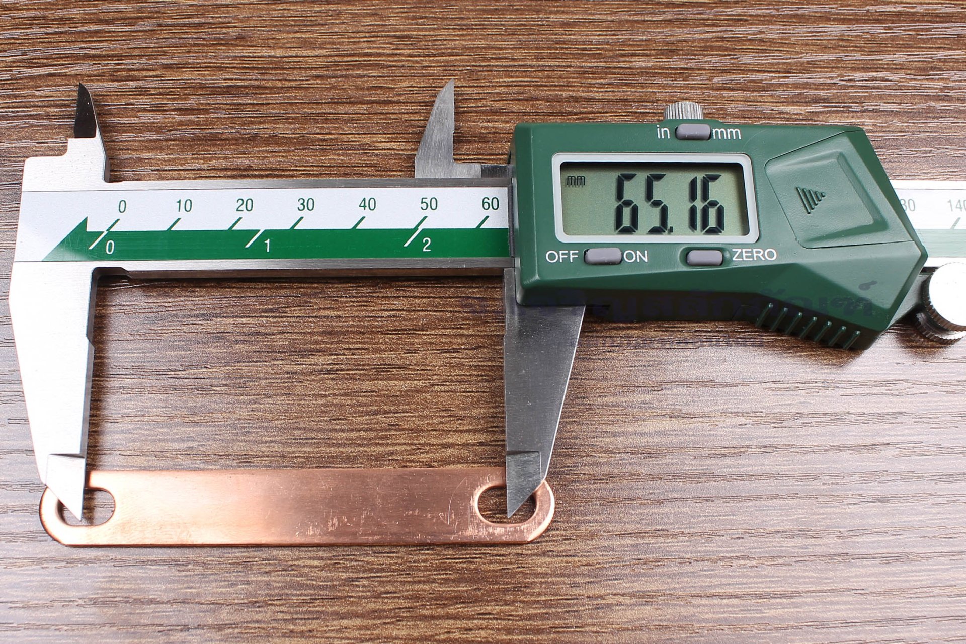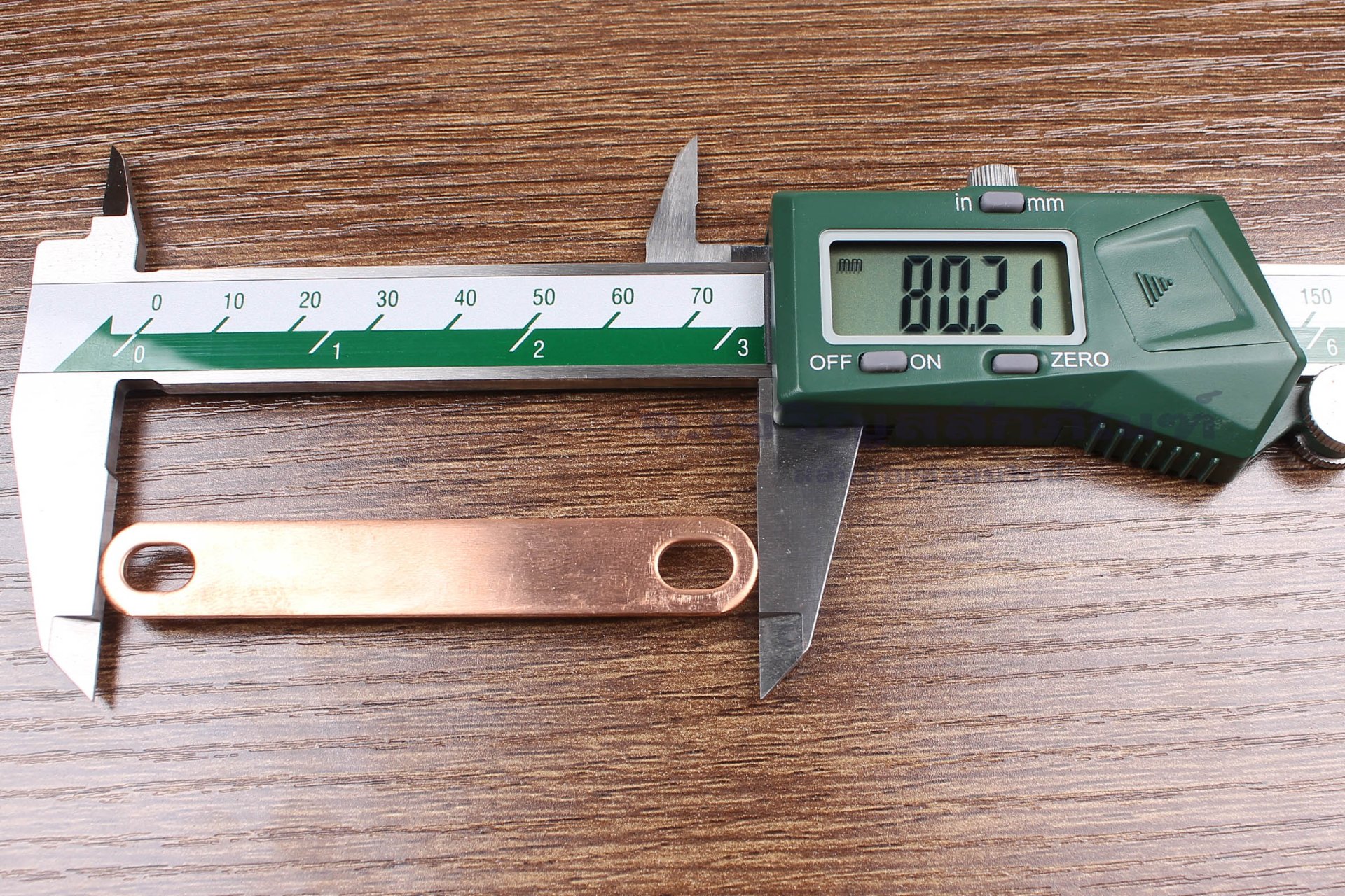 Pure Copper Bus Bar Connector : 80x1.5x12, holes distance 65 mm, holes 6x9 mm
