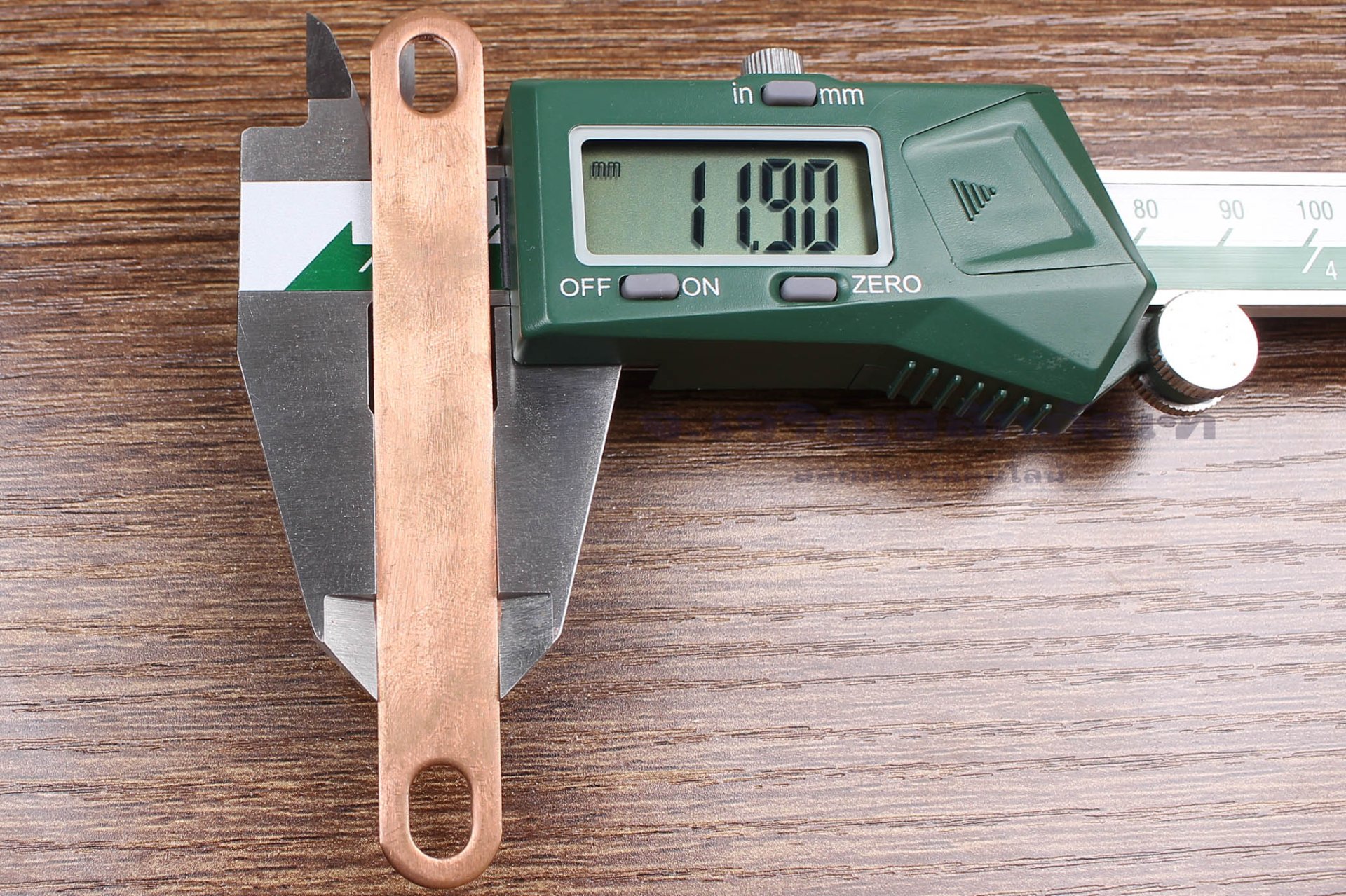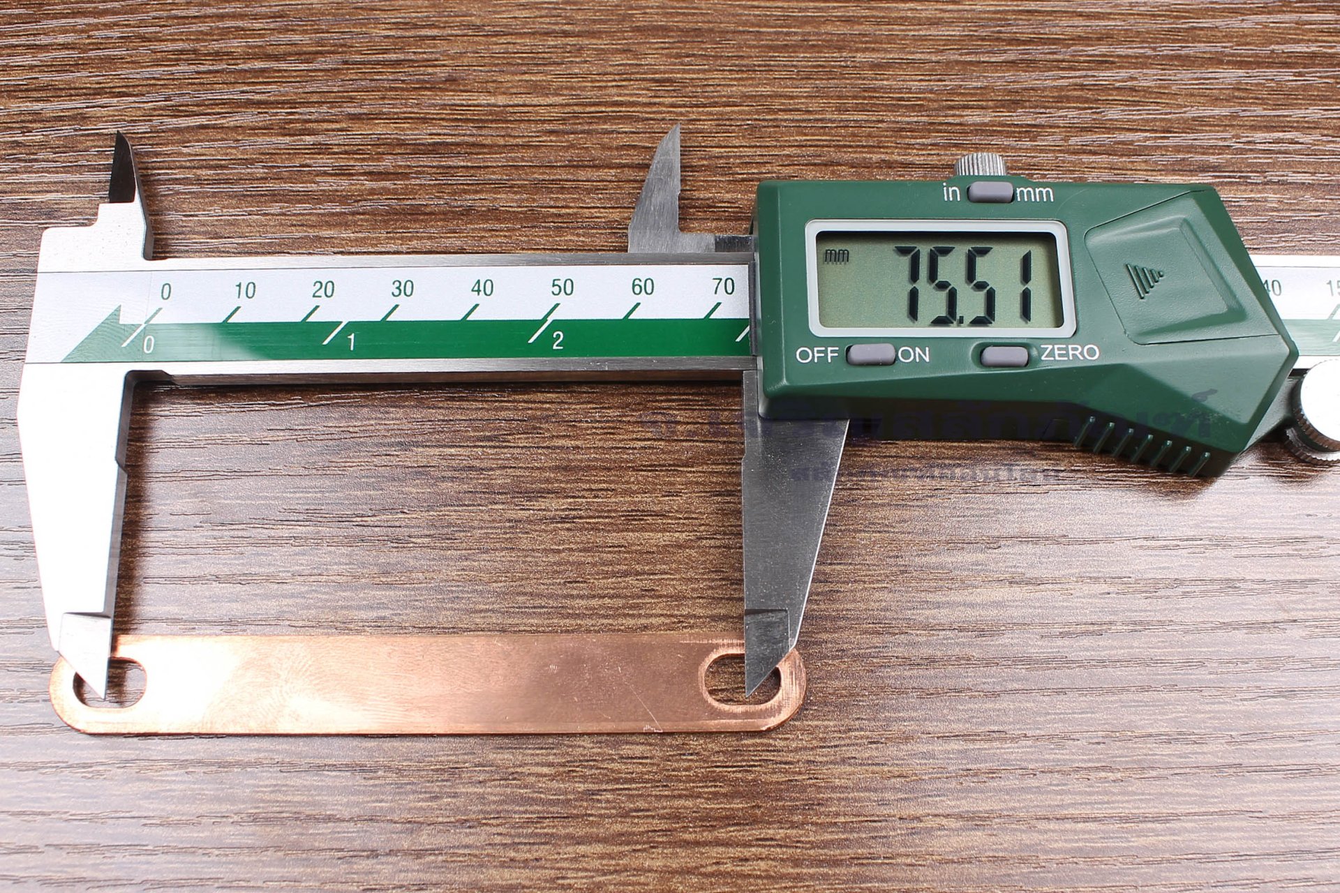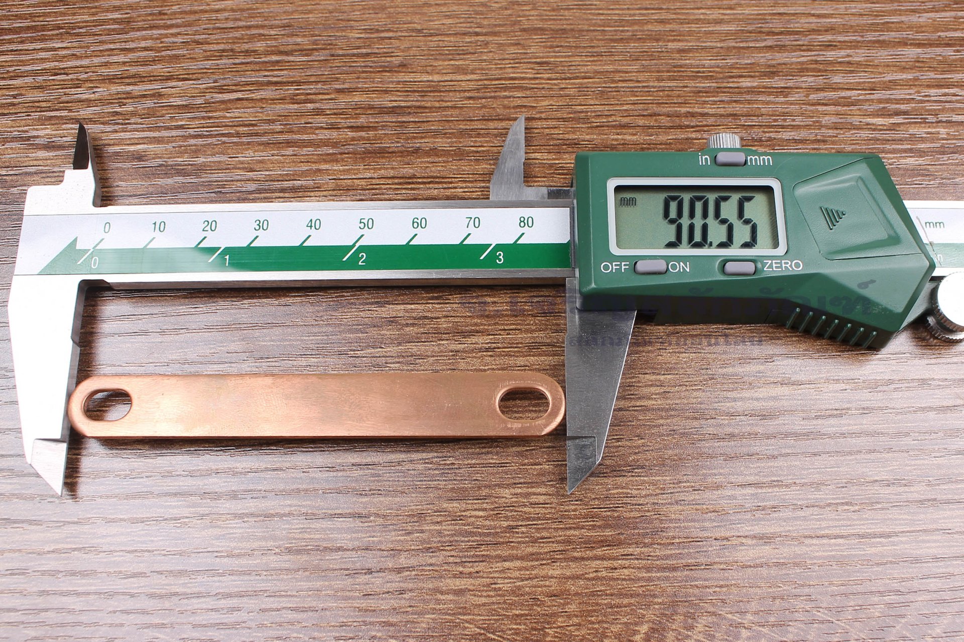Pure Copper Bus Bar Connector : 90x1.5x12, holes distance 75 mm, holes 6x9 mm