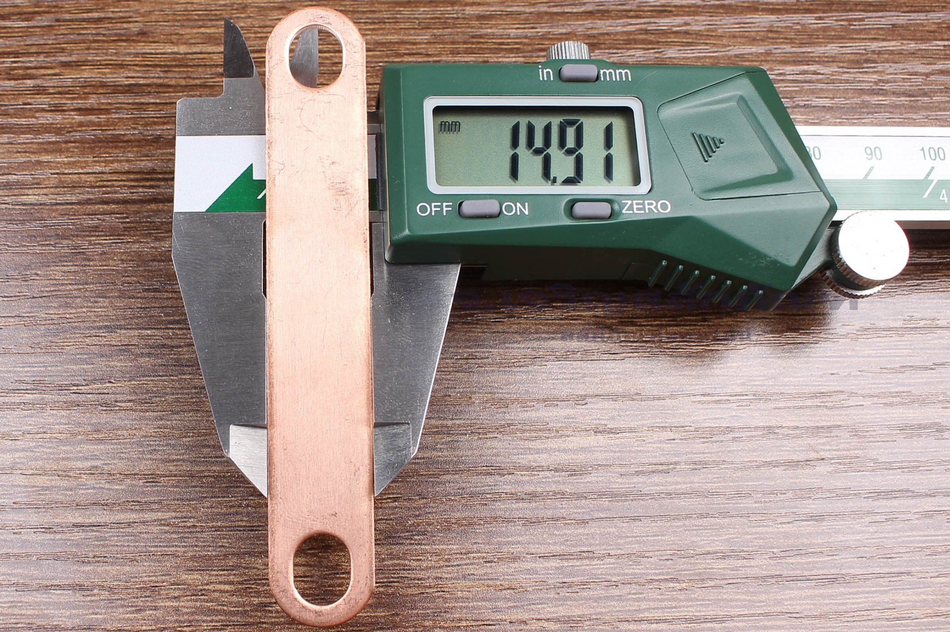Pure Copper Bus Bar Connector : 91x1.5x15, holes distance 75 mm, holes 8x10 mm