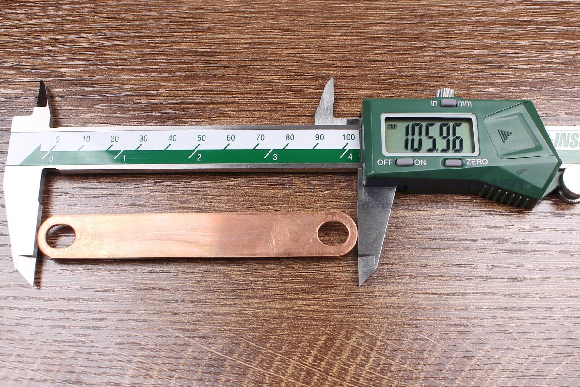 Pure Copper Bus Bar Connector : 106x1.5x15, holes distance 90 mm, holes 8x10 mm