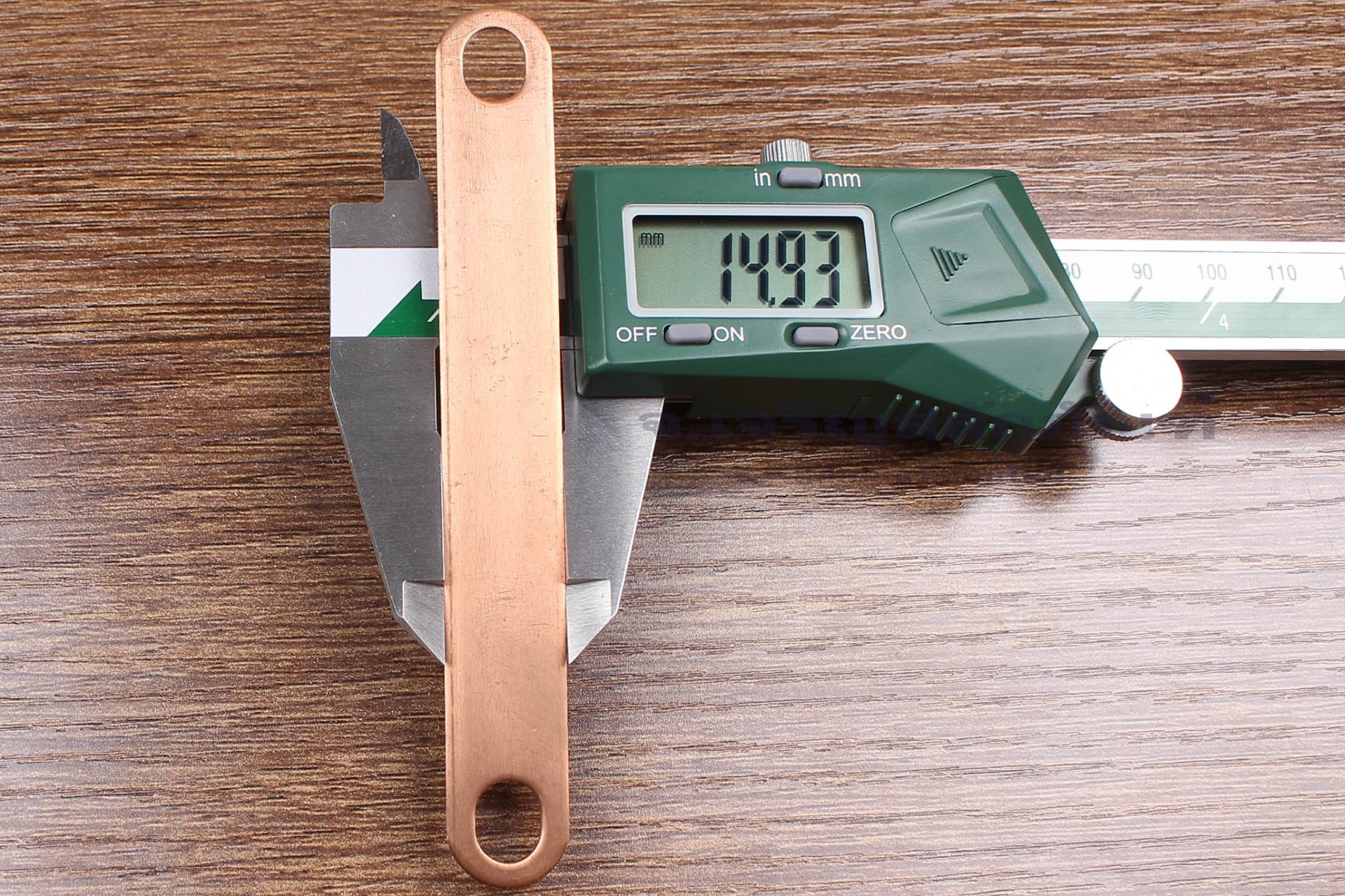 บัสบาร์ ทองแดง 111x1.5x15 ขนาดรู 8x10 mm ระยะรู 95 mm - Pure Copper Bus Bar Connector : 111x1.5x15, holes distance 95 mm, holes 8x10 mm