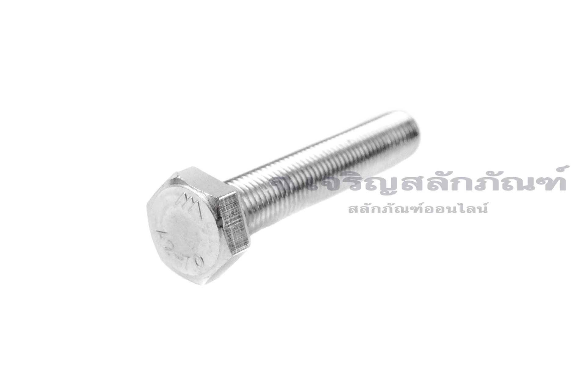 สกรูน็อตหัวเหลี่ยมสแตนเลส น็อตตัวผู้สแตนเลสขนาด M8x1.0x60 เกลียวตลอด